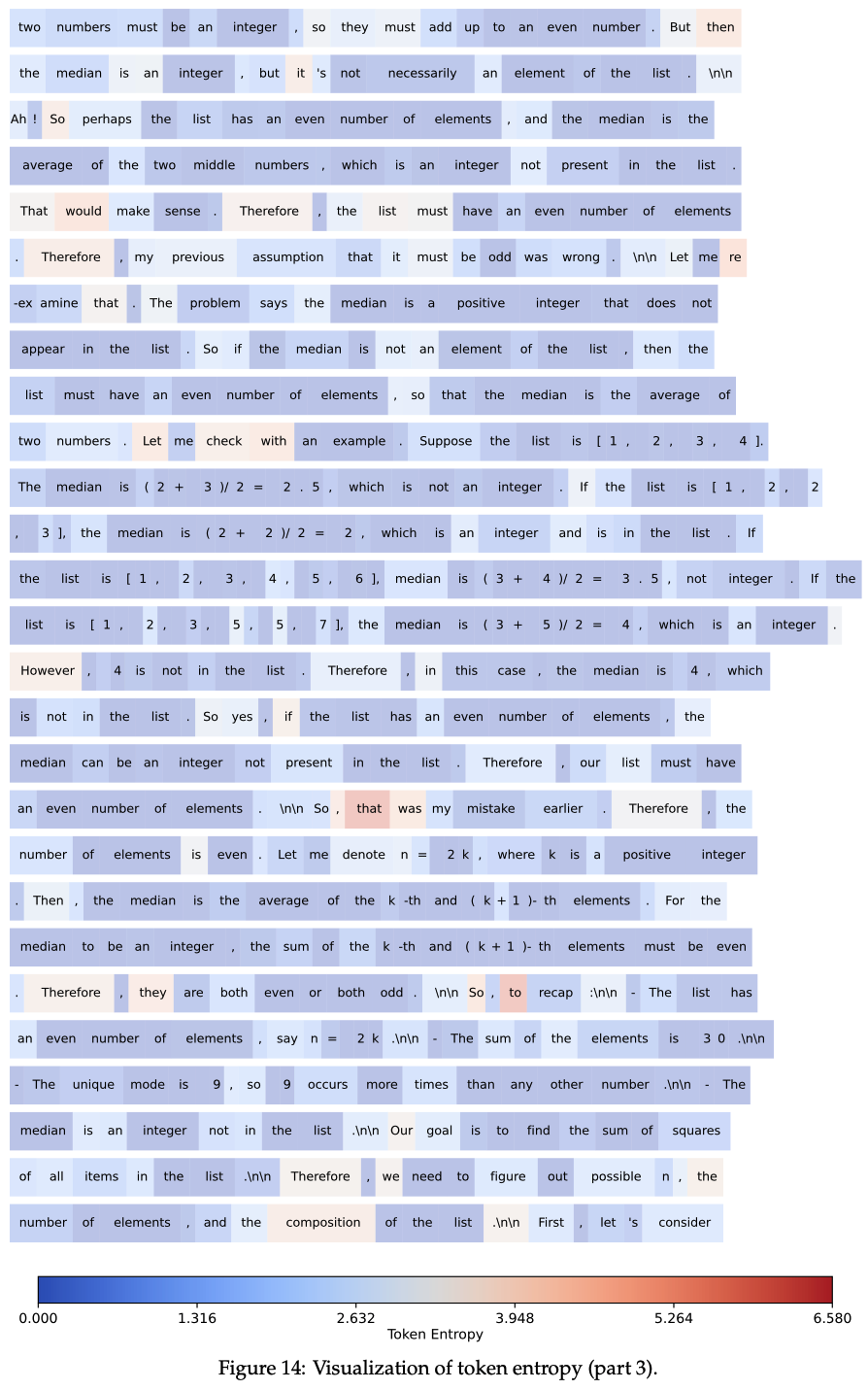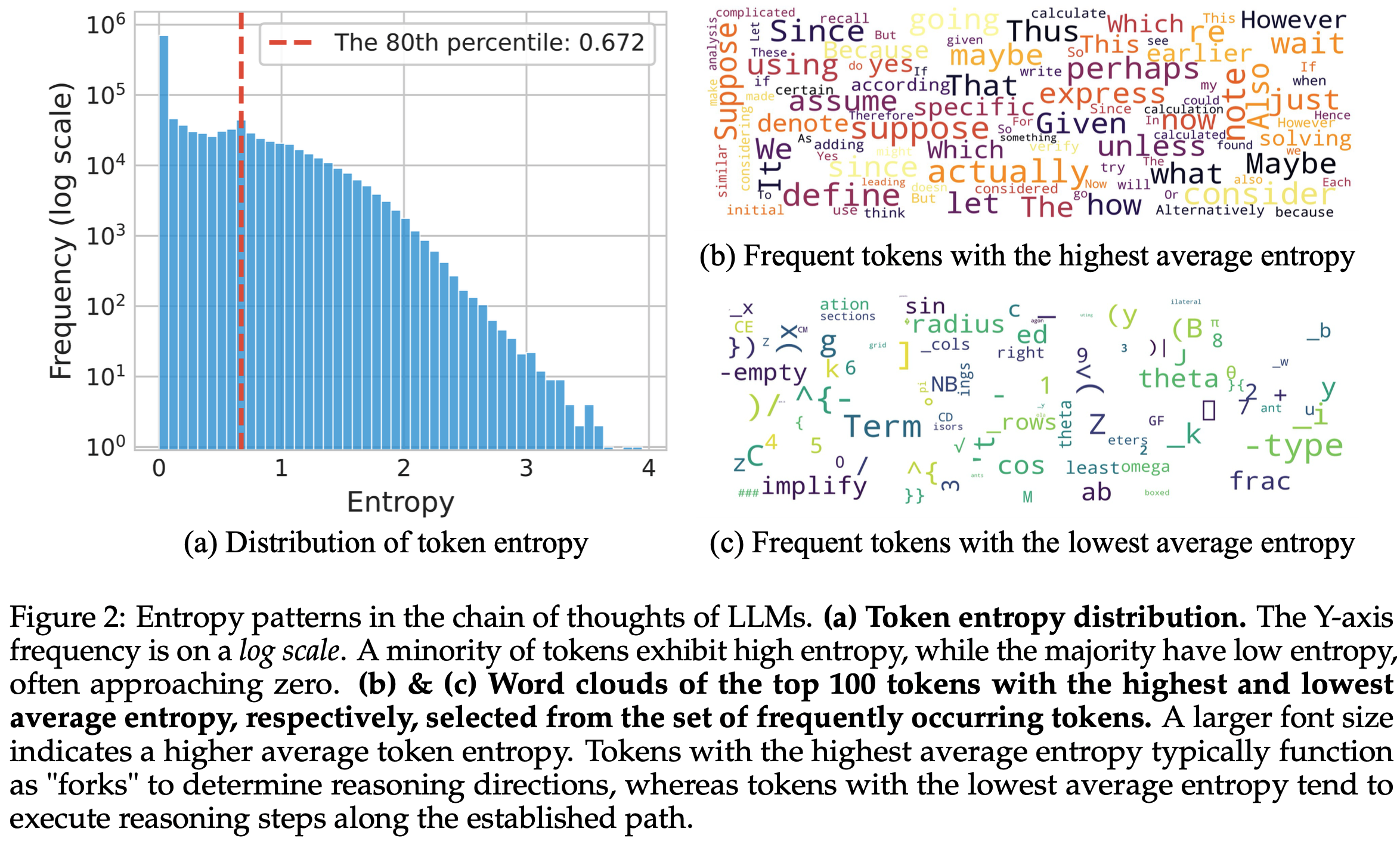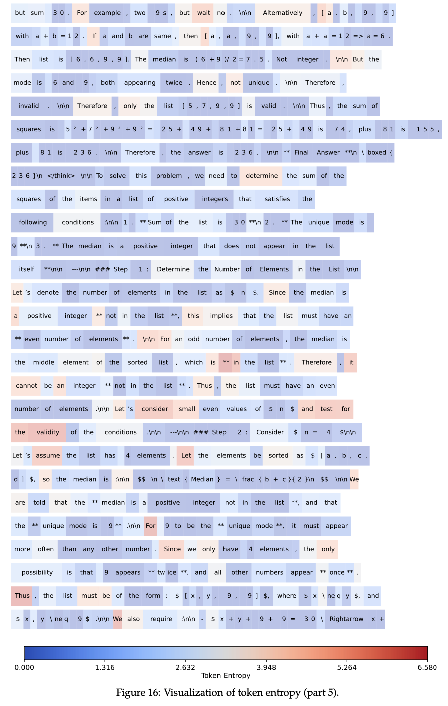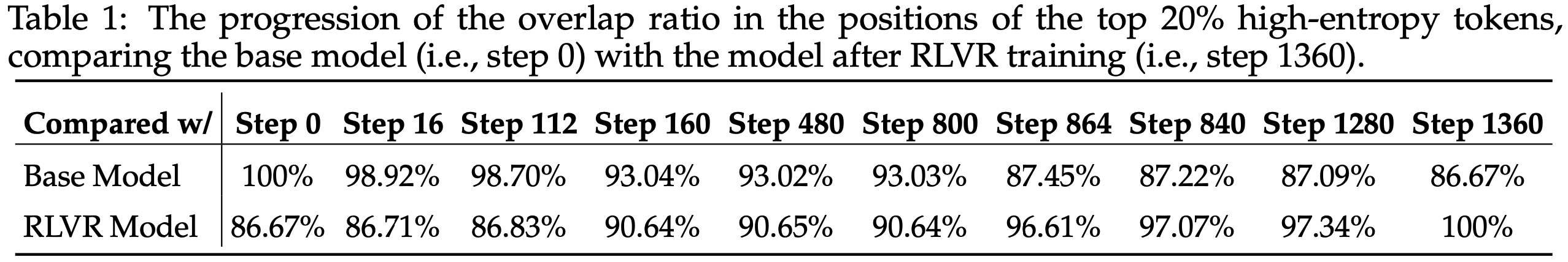 RLVR 主要调整高熵 Token 的熵值,而低熵 Token 的熵值相对稳定,变化较小(RLVR predominantly alters the entropy of high-entropy tokens, whereas the entropy of low-entropy tokens remains comparatively stable with minimal variations.)