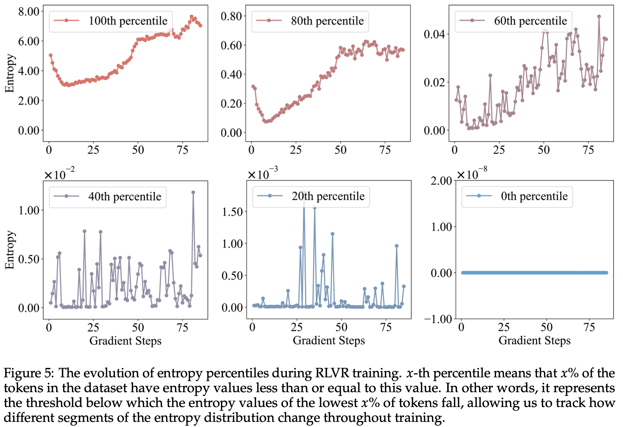 在本节中,基于第 3 节对链式思维中熵模式的观察,论文进一步研究了这些模式在 RLVR 训练过程中的演化