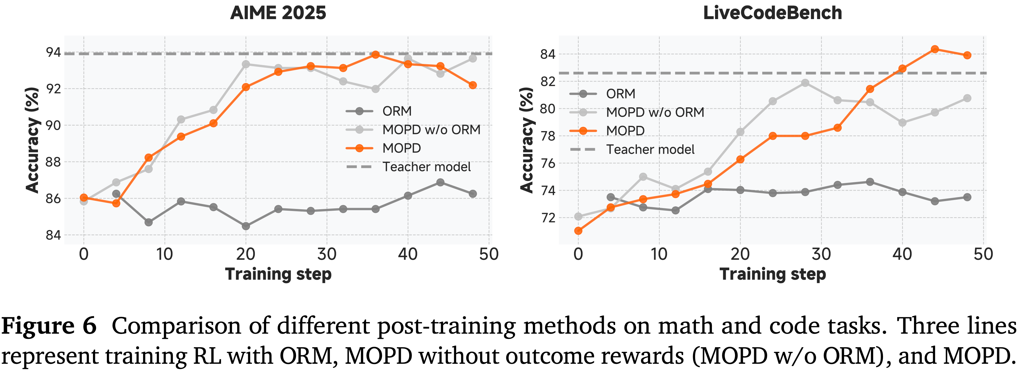 Furthermore, we observe that on-policy training exhibits high variance, failing to guarantee monotonic improvement or stable convergence.