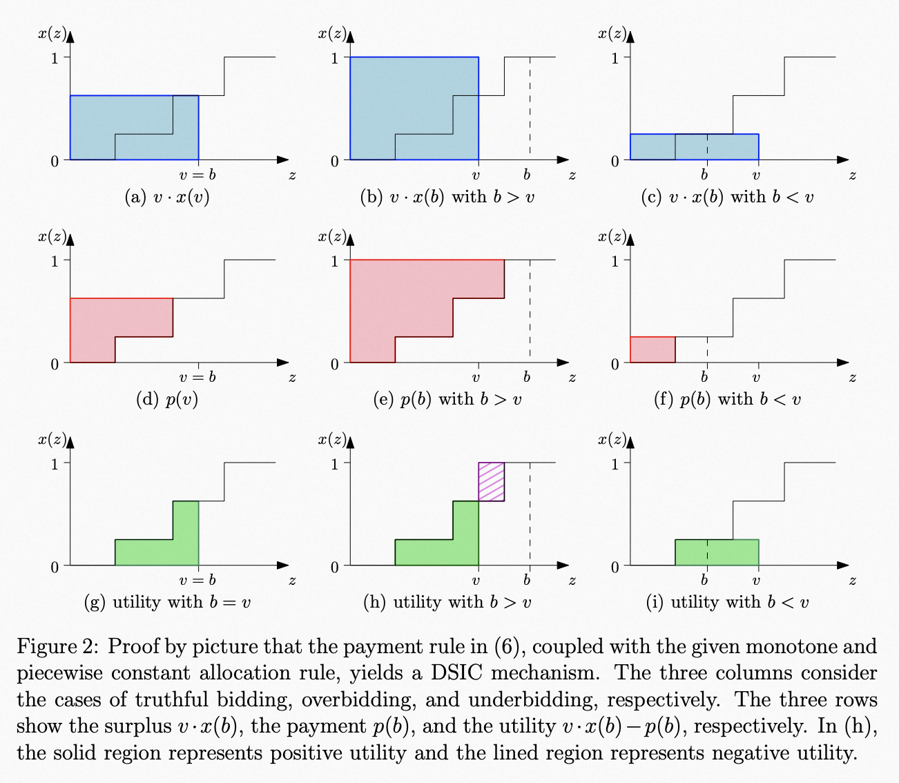 • 其中 \(x_i\) 是竞拍者 \(i\) 获得物品的分配概率,\(v_i\) 是竞拍者 \(i\) 对该物品的估值