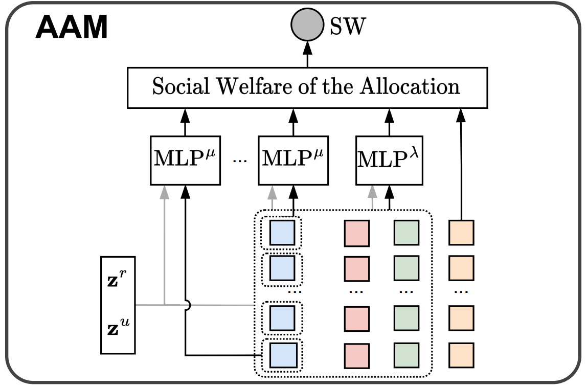 - AAM使用两个深度神经网络来建模机制参数 \(\mu_{j}\) 和 \(\lambda(\cdot)\) ,旨在提高该自动化机制的表达能力,同时保证IC和IR