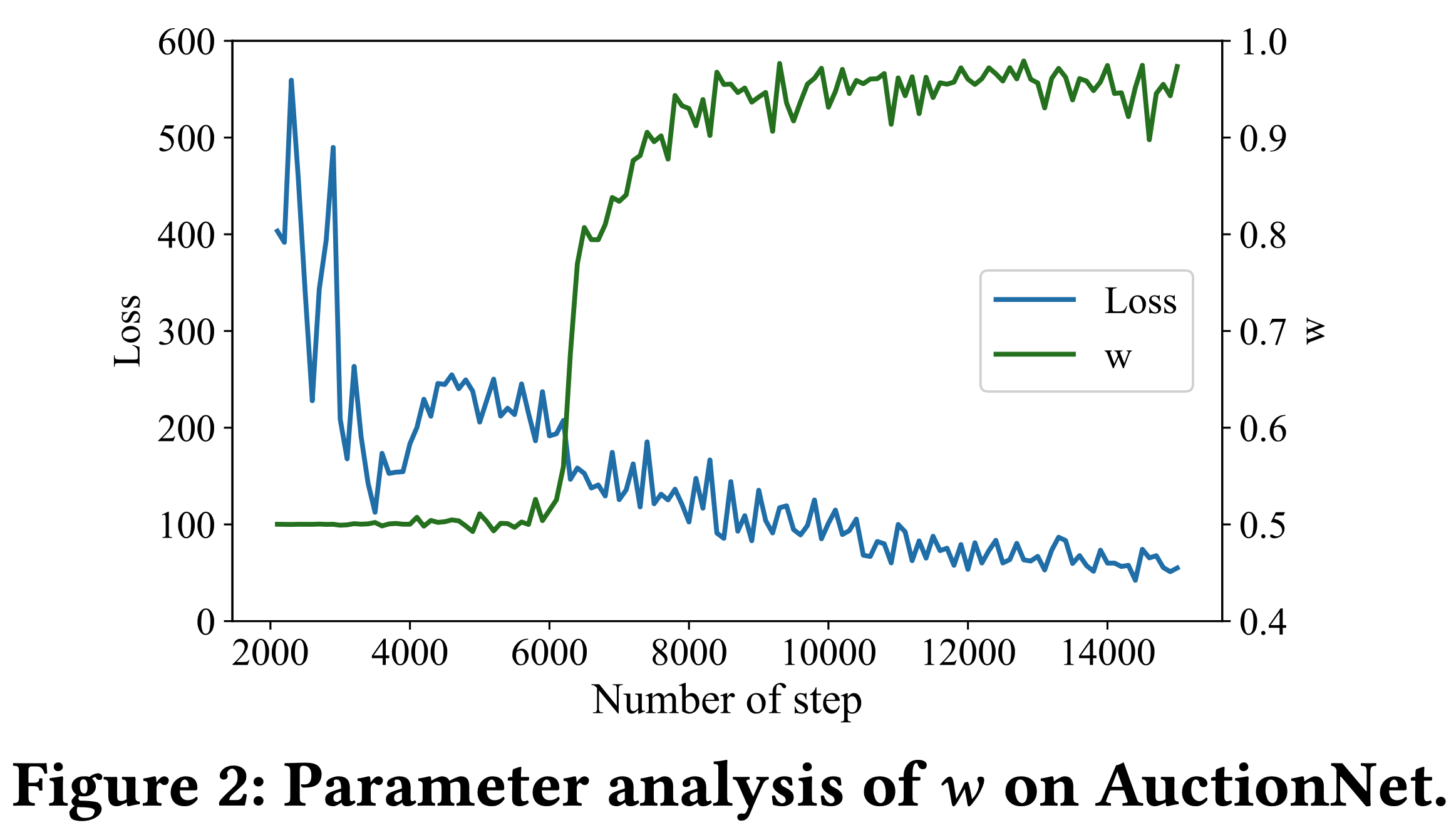 - 为回答RQ3,论文对权重 \(w_{t}\) 进行参数分析,如图1(b.1)所示,以阐明训练过程中 \(\tilde{a}_{t}\) 和 \(a_{t}\) 之间的差异。具体而言,图2曝光了训练步骤中平均总损失 \(L_{o}\) 和权重 \(w_{t}\) 的变化情况,使论文能够监测 \(\tilde{r}_{t + 1}\) 和 \(\hat{r}_{t + 1}\) 之间的差异。\(w_{t}\) 越大,表明 \(\tilde{r}_{t + 1}\) 对 \(\hat{r}_{t + 1}\) 的影响越大,进而证明 \(\tilde{a}_{t}\) 优于 \(a_{t}\)。这一结果凸显了价值函数在指导动作探索方面的有效性