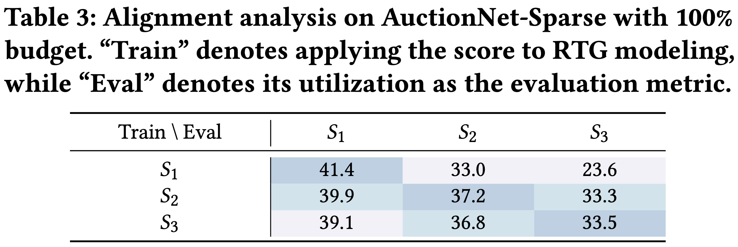 \end{cases}$$- 其中,\(S_{1}\) 仅考虑获得的总曝光价值,代表对CPA条件限制较为宽松的业务场景。\(S_{2}\) 是论文的优化目标和评估分数,它对CPA约束添加了惩罚项。\(S_{3}\) 进一步提高了CPA的惩罚系数,代表对CPA条件限制严格的业务场景。这些指标既可以在训练期间用于 RTG 建模,也可以在测试期间用作评估标准。结果如表3所示