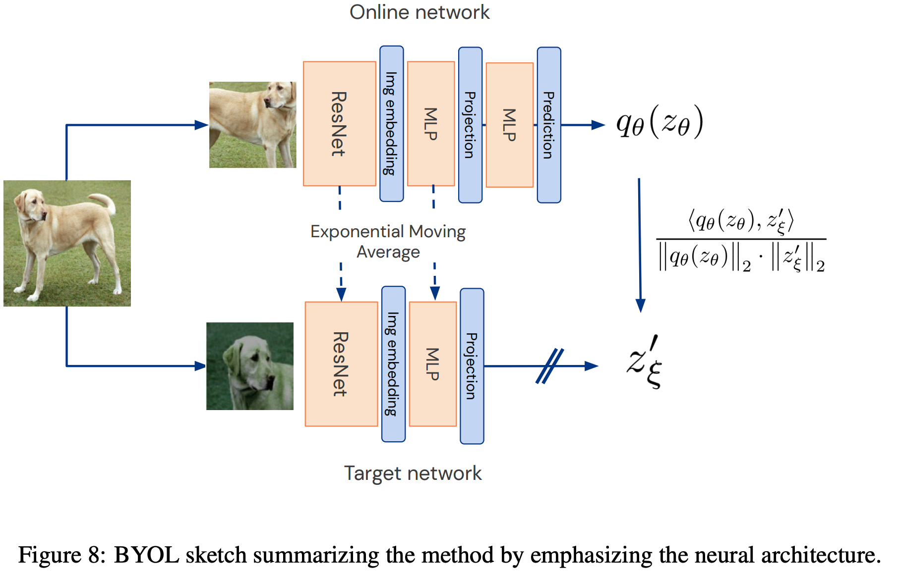 - BYOL模型的整体架构图如下: