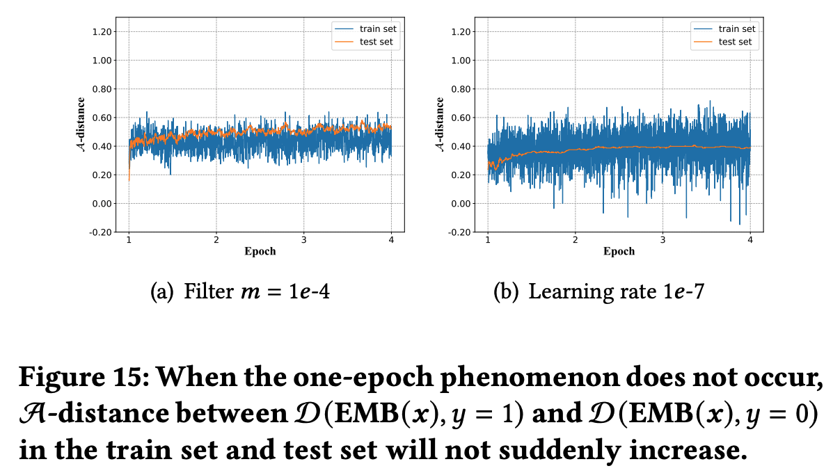 - 虽然可以通过改变优化器和网络结构使得 one-epoch 现象消失,但这会影响最终模型效果: