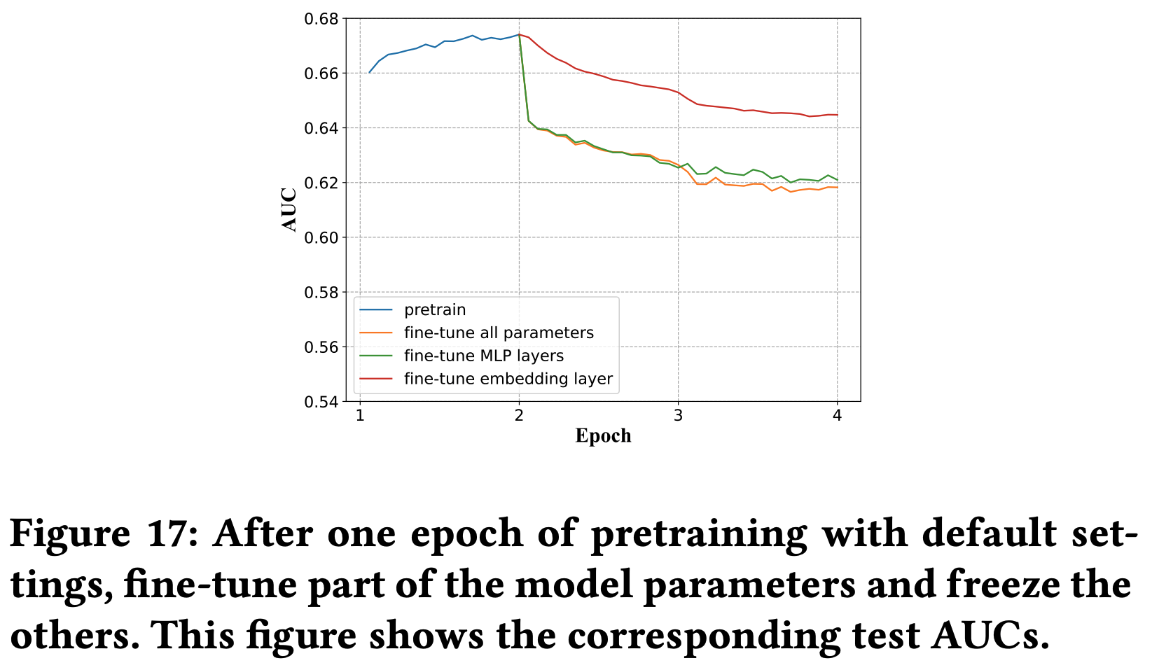 - 在一个 epoch 后,分别固定 MLP 和 Embedding 参数,embedding 出现 one-epoch 的状况更弱: