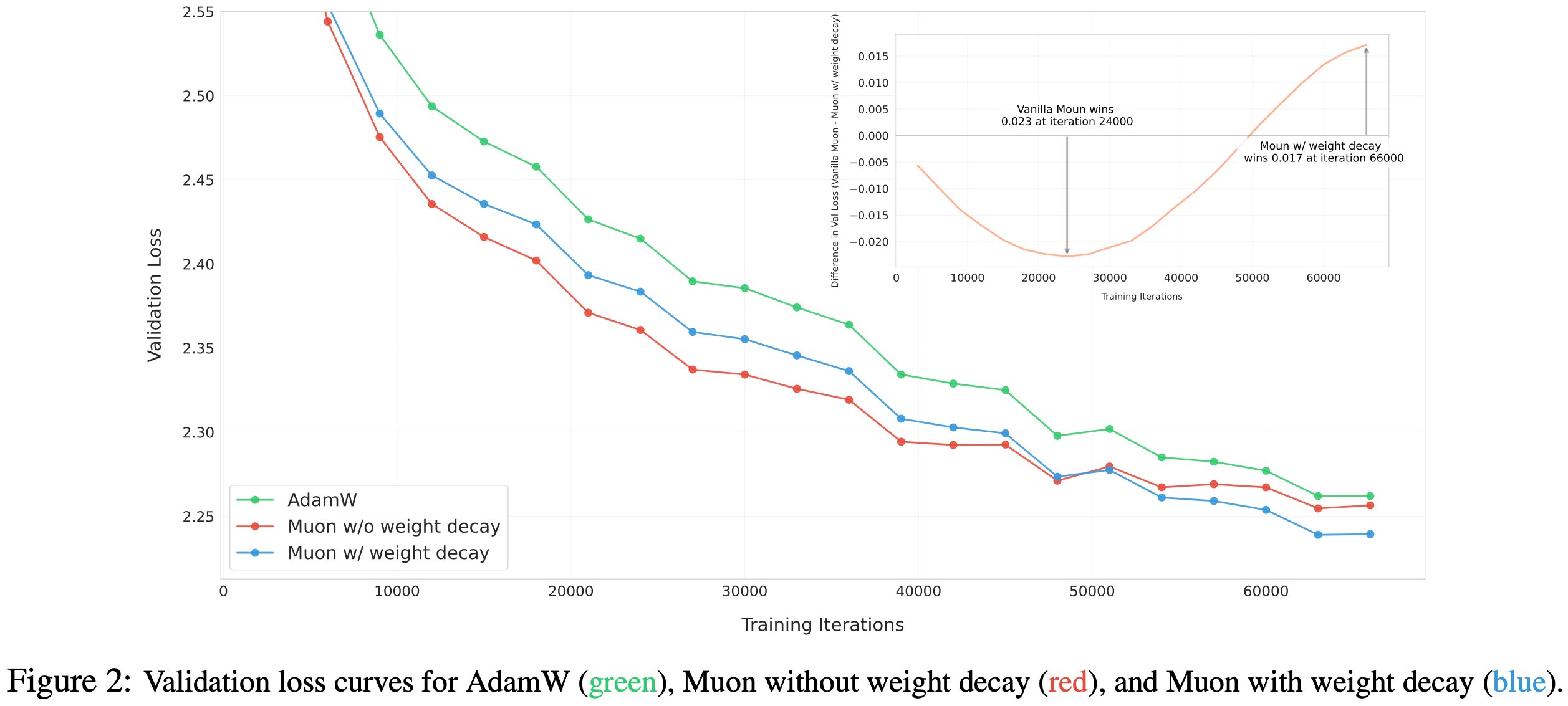 - 这些调整使得 Muon 无需超参数调优即可直接使用,并显著提高了训练稳定性