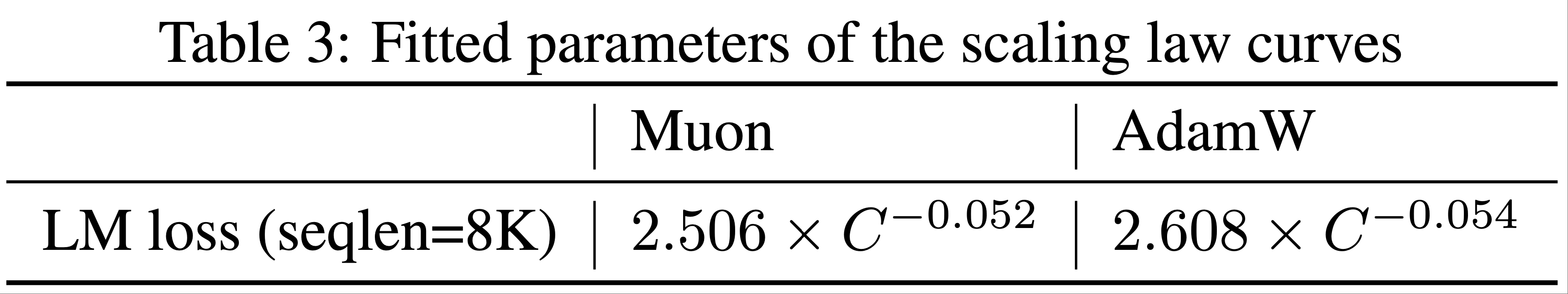 - 扩展定律实验表明,在计算最优训练条件下,Muon 的计算效率比 AdamW 高约 2 倍