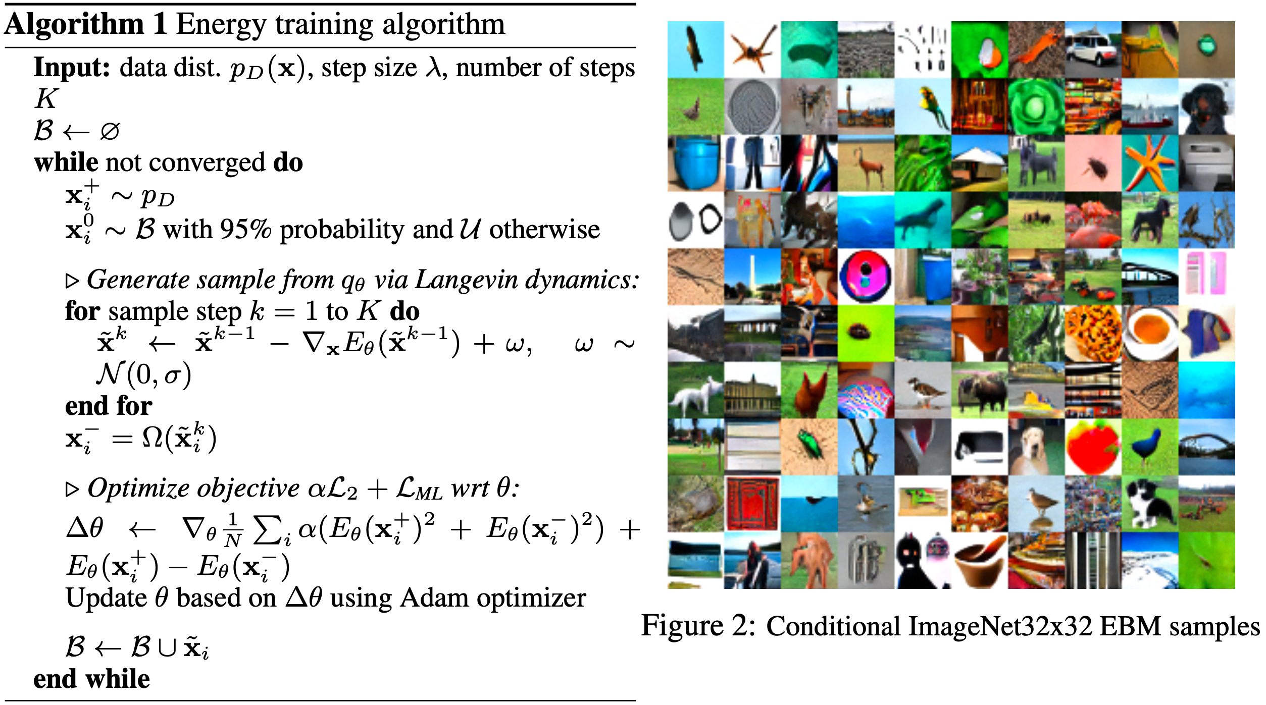 - 基于能量的生成模型(Energy-Based Model,EBM),是一种独立于GANs(Generative Adversarial Networks),VAEs(Variational Autoencoders),Diffusion之外的生成模型基于能量的生成模型。EBMs不直接建模概率密度函数,而是通过能量函数间接地表示数据分布,相关论文可见:Implicit Generation and Modeling with Energy Based Models, OpenAI, NeurIPS 2019