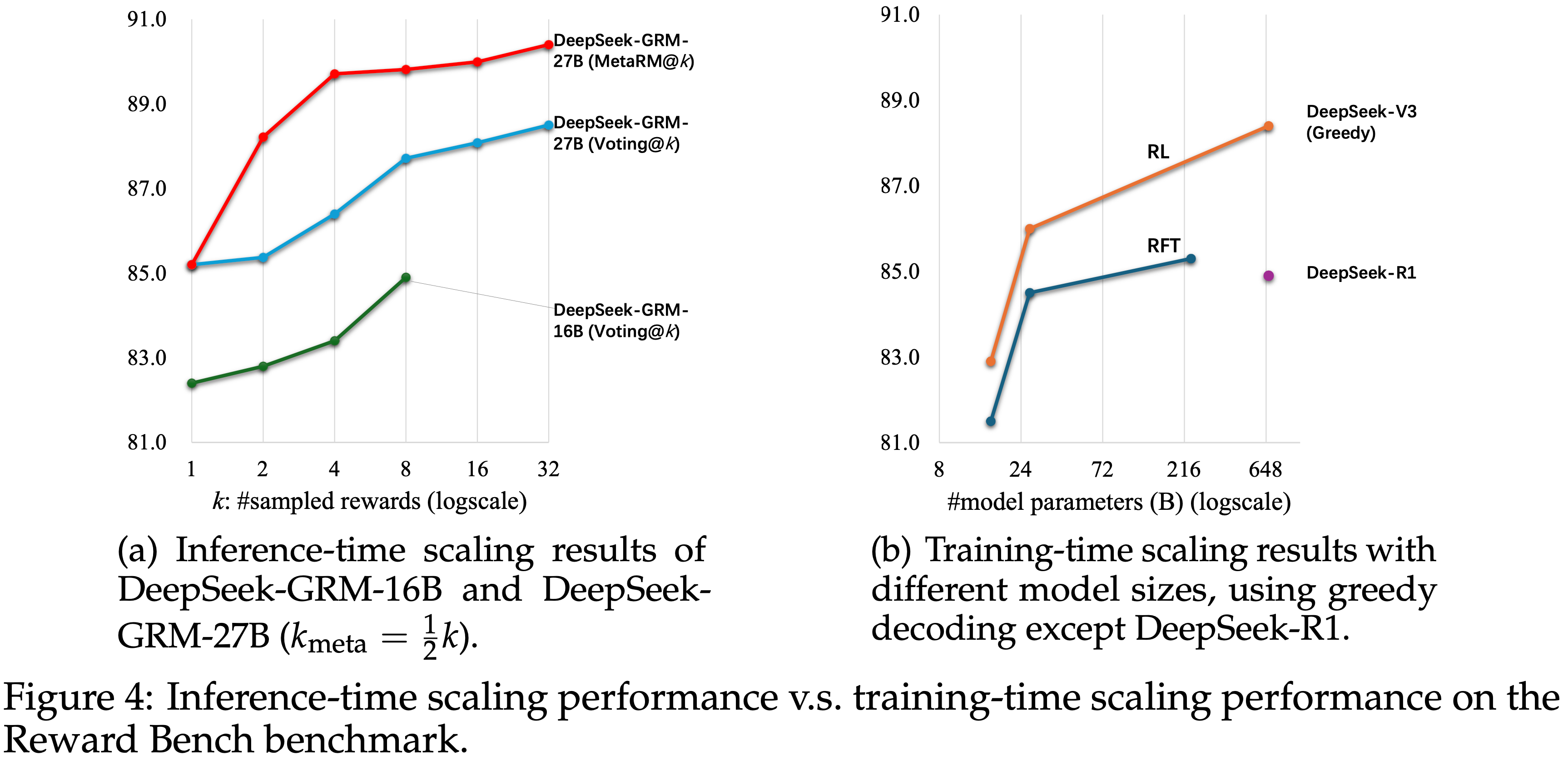 - 论文还进一步引入了一个 Mata RM 来有效提升 DeepSeek-GRM 在投票之外的推理时扩展性能