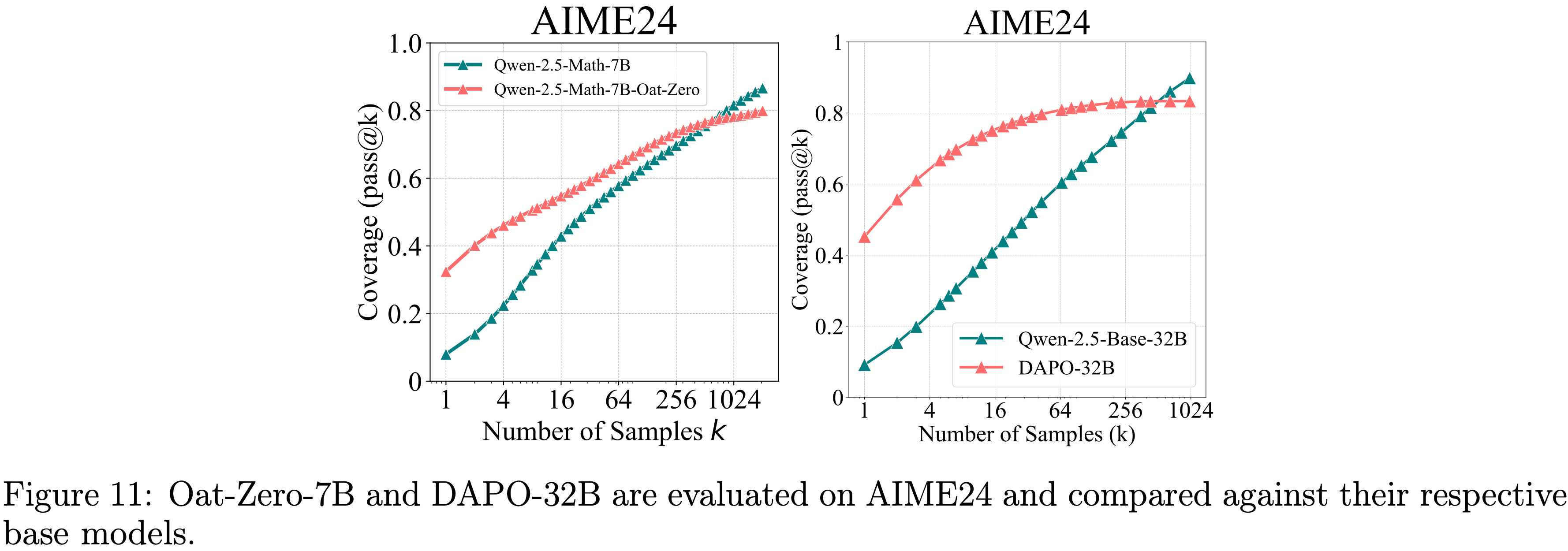 • 图 11:在AIME24上评估 Oat-Zero-7B 和 DAPO-32B,并与各自的 Base Model 进行比较