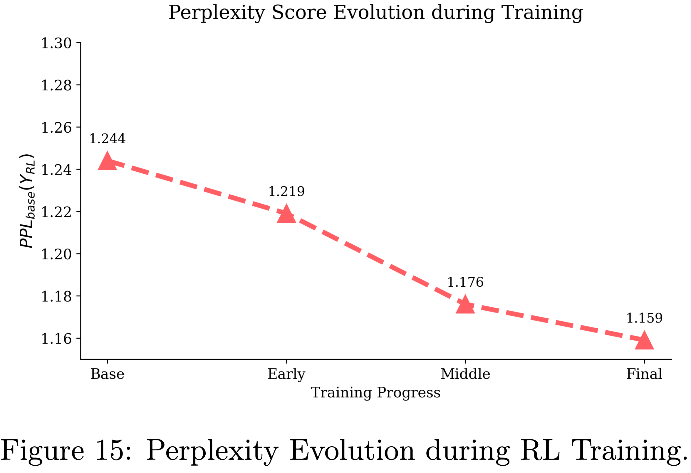 • 图15:RL训练期间的困惑度演变