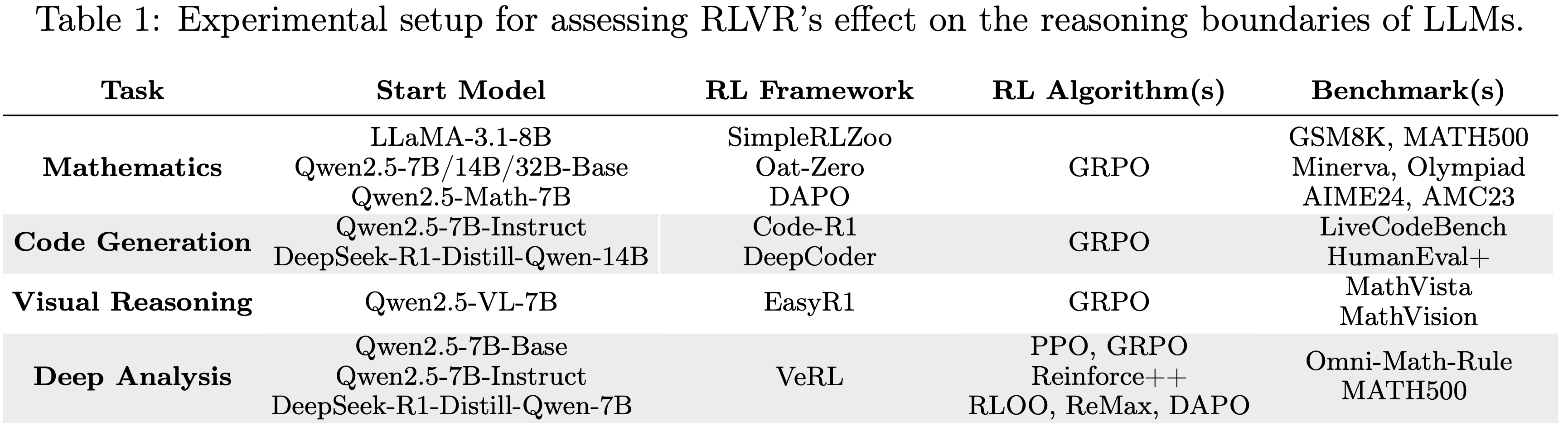 • 论文系统地研究了当前 RLVR 方法对 LLM 推理能力边界的影响