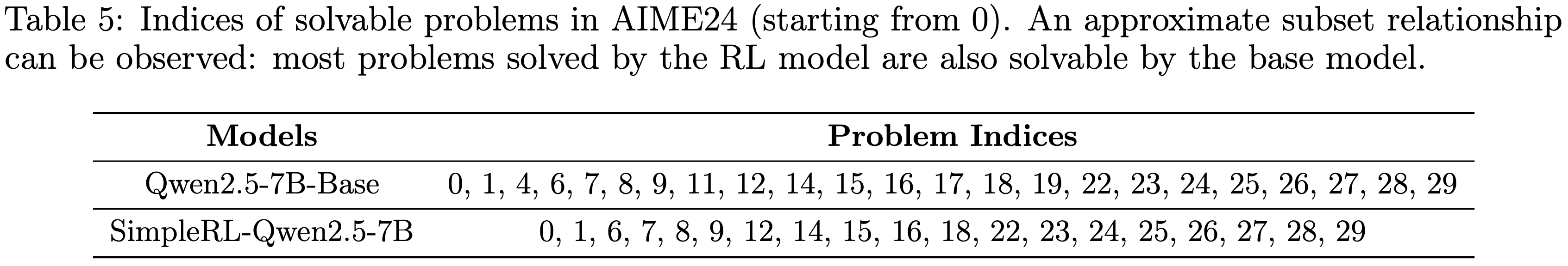• 表 5:AIME24 中可解决问题(从0开始)的索引