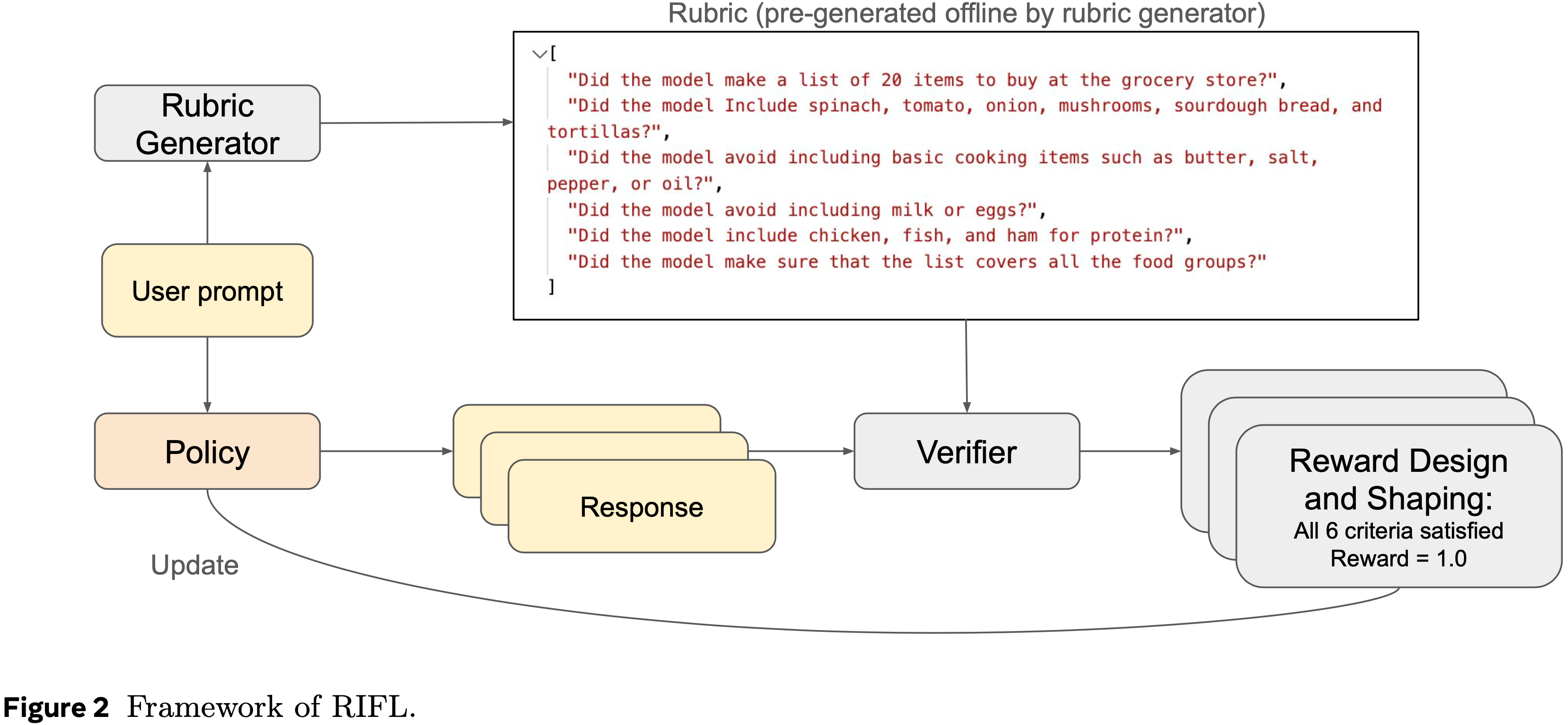 - 论文进一步提出了 RIFL( Rubric-based 指令遵循学习,Rubric-based Instruction-Following Learning)