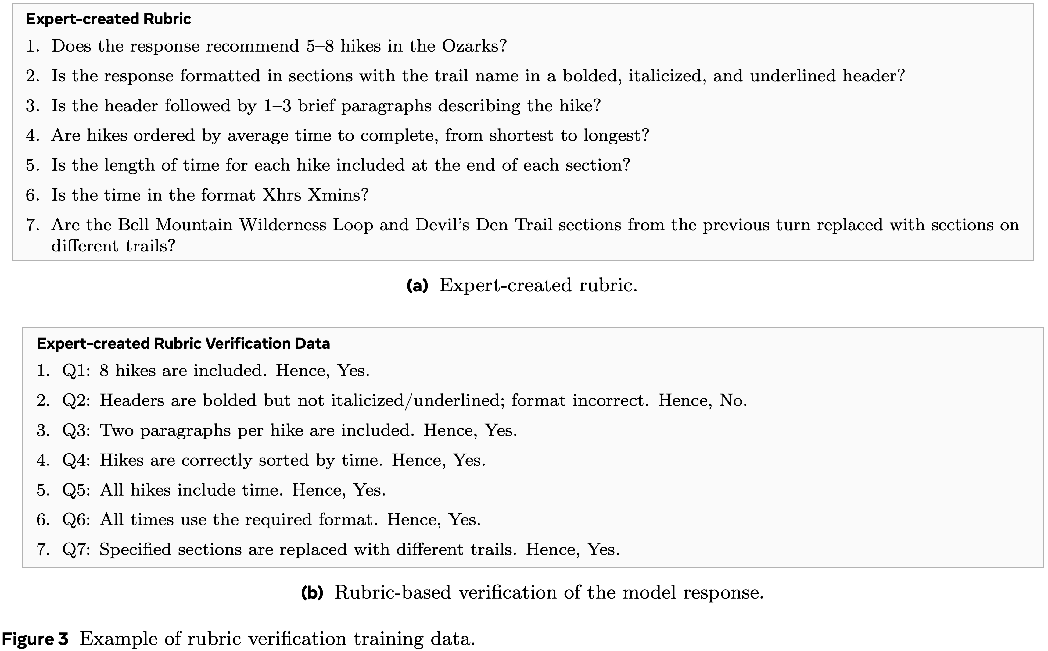 - 为了进一步释放 RL 的力量,论文建议在后期训练中使用 Rubric-based RL 来提升 LLM 的高级指令遵循能力