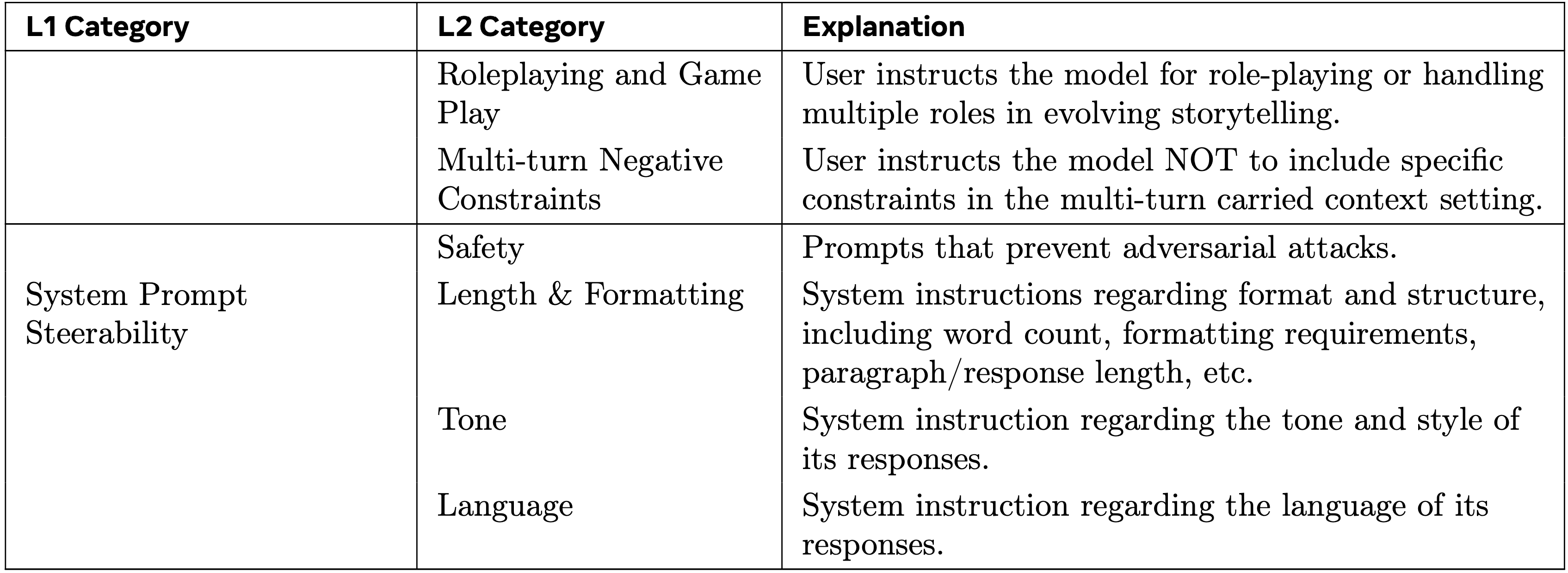 - AdvancedIF 由指令遵循能力的三个重要方面组成,以全面评估 LLM :