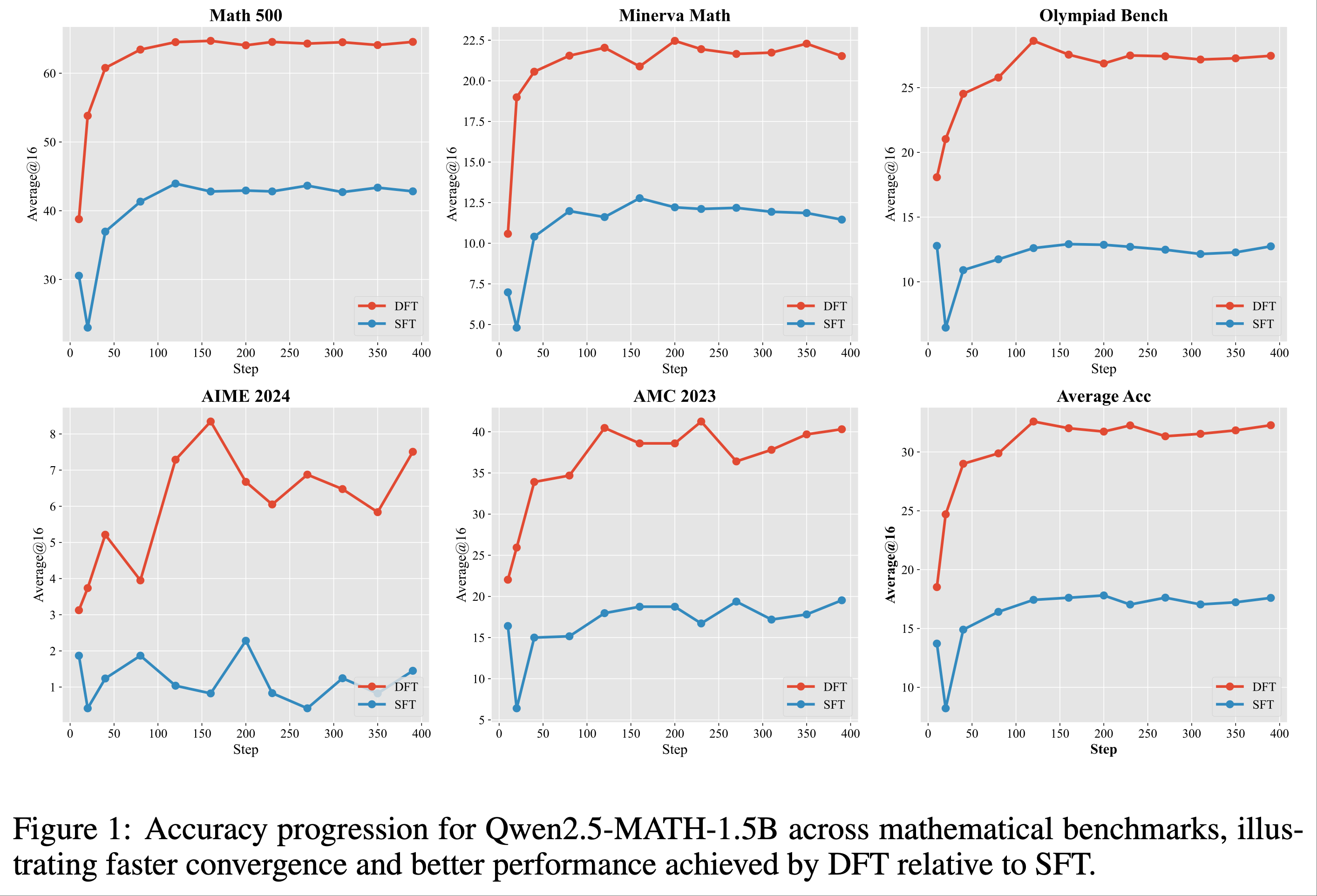 - 论文作者通过数学分析发现标准 SFT 的梯度隐式编码了一种有问题的奖励结构,可能会严重限制模型的泛化能力