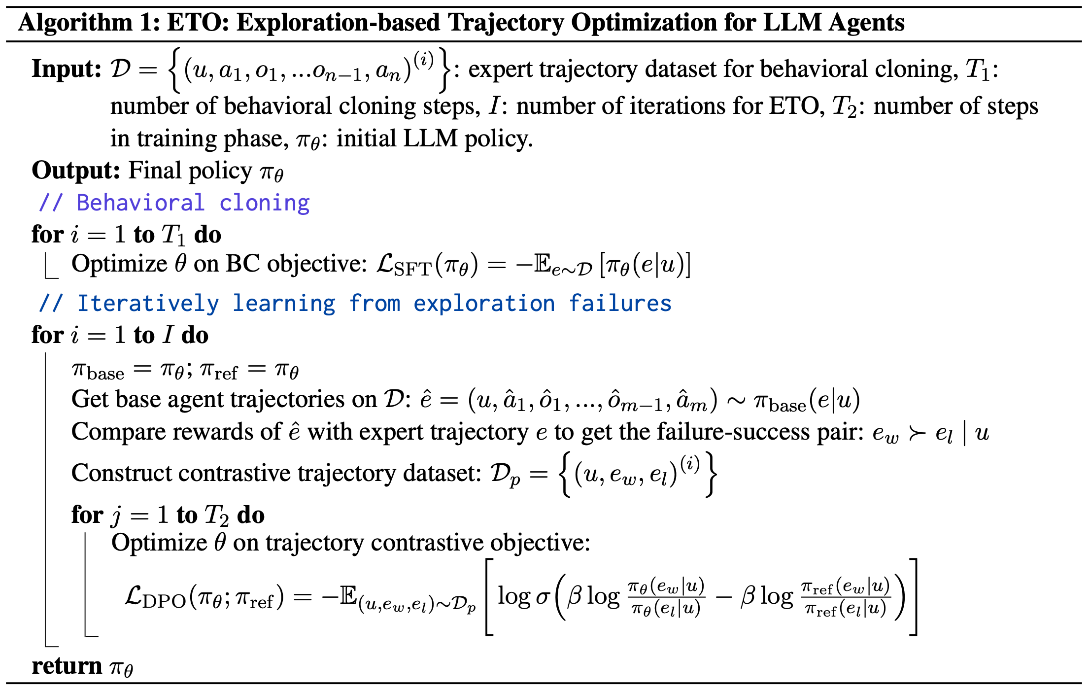 • 在 ETO 的训练阶段,Agent 从“失败-成功”(failure-success)轨迹对中学习对比信息以更新策略