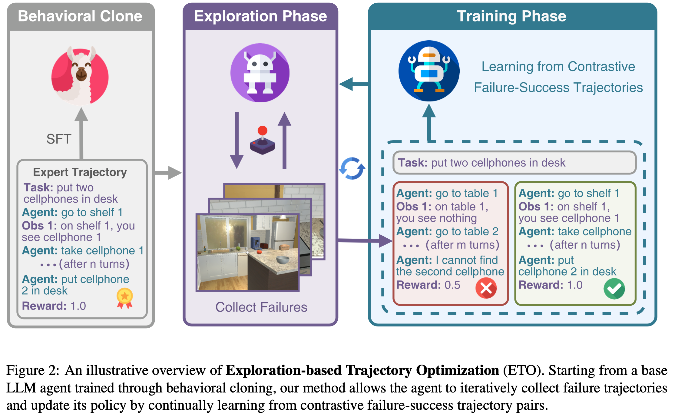• 在 ETO 的探索阶段,Agent 探索环境以收集失败轨迹;
