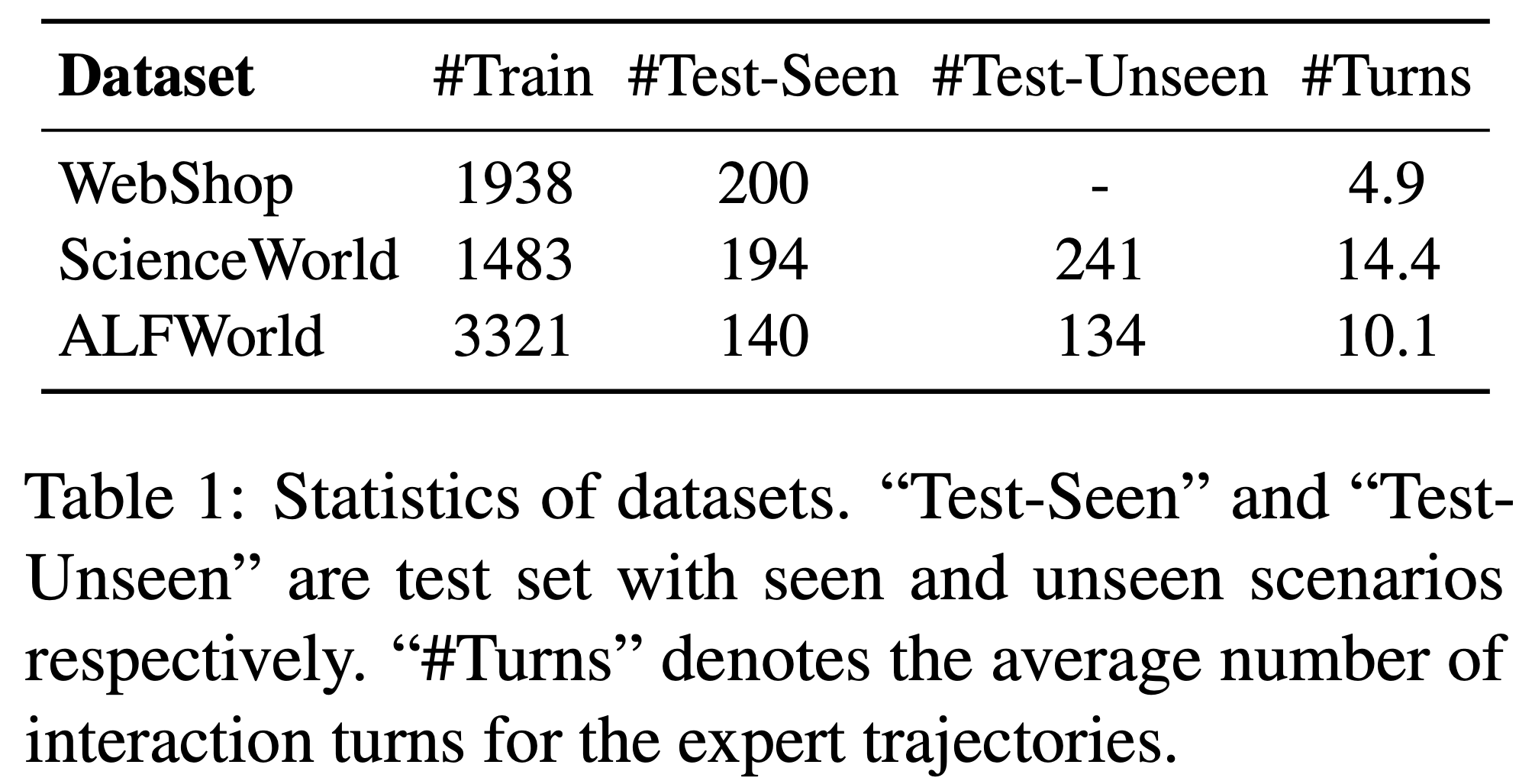 • 原始 ALFWorld 数据集包含“seen”和“unseen”评估集