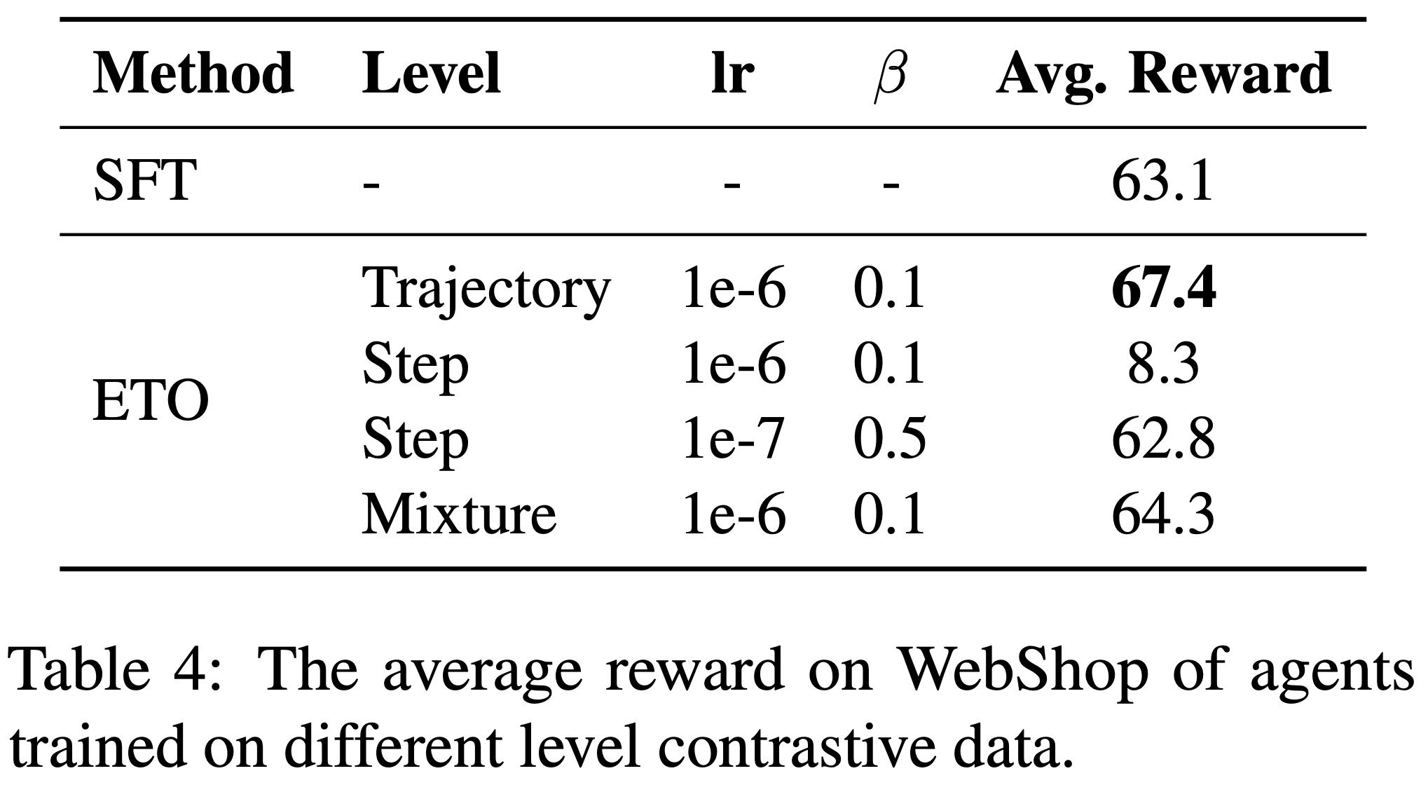 • 另一方面,论文发现步骤级对比建模的稳定性较差 ,需要更低的学习率和更高的约束参数 \(\beta\) 以保持 Agent 的基本能力