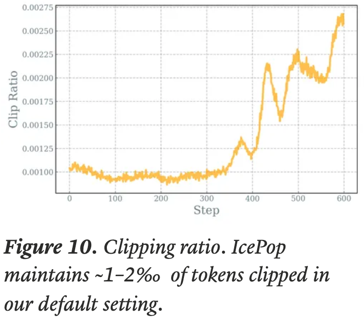 • 使用IcePop,论文发现可以有效解决在策略训练的不稳定性,甚至实现了比 TIS 更好的性能