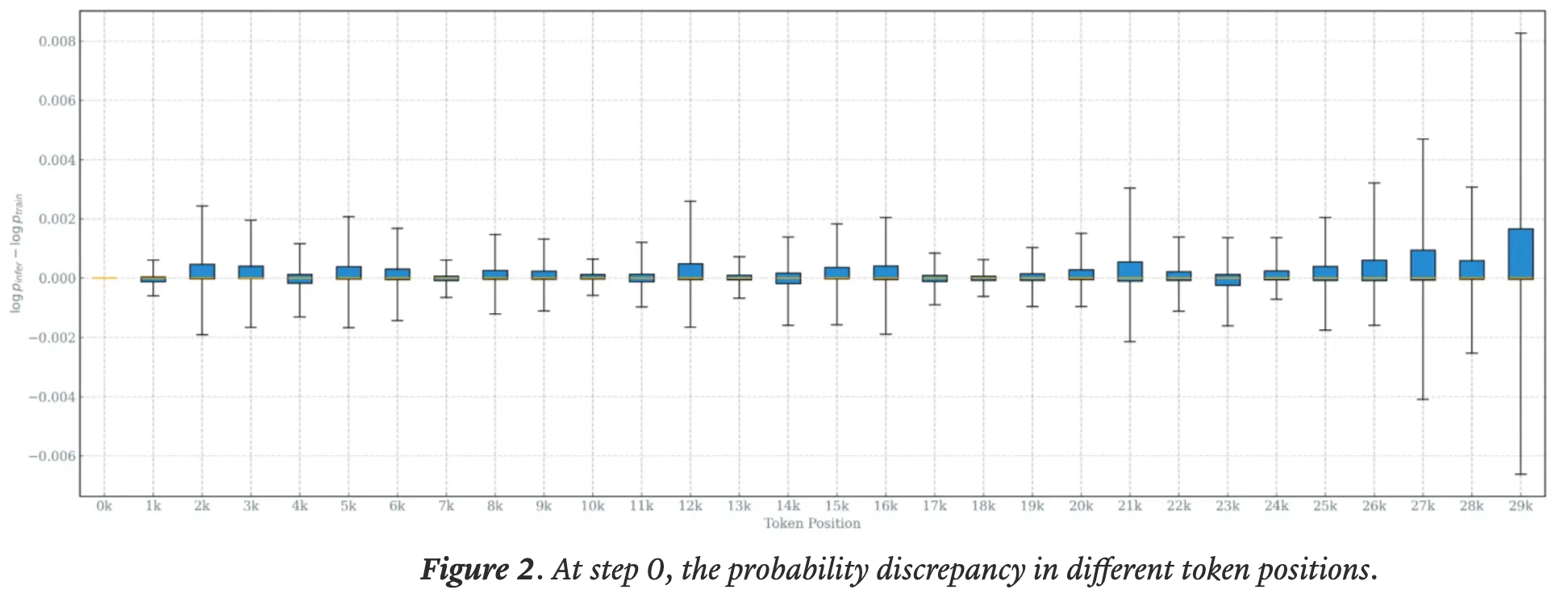 • 在训练刚开始时,论文发现某些 Token 位置已经存在明显的概率差异