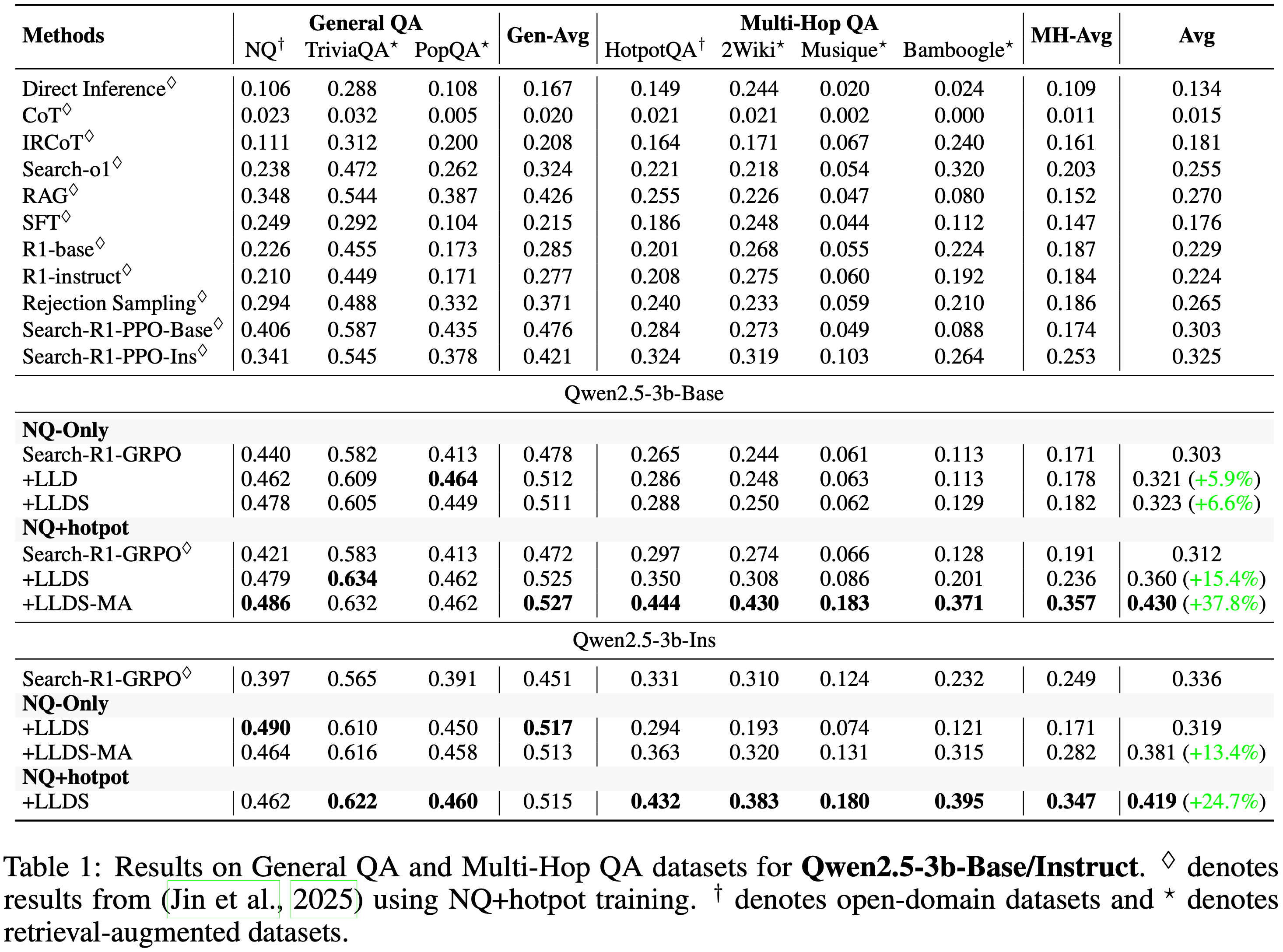 - 在七个开放域和多跳问答基准测试中,LLDS 稳定了训练,防止了梯度爆炸,并带来了显著的性能提升
