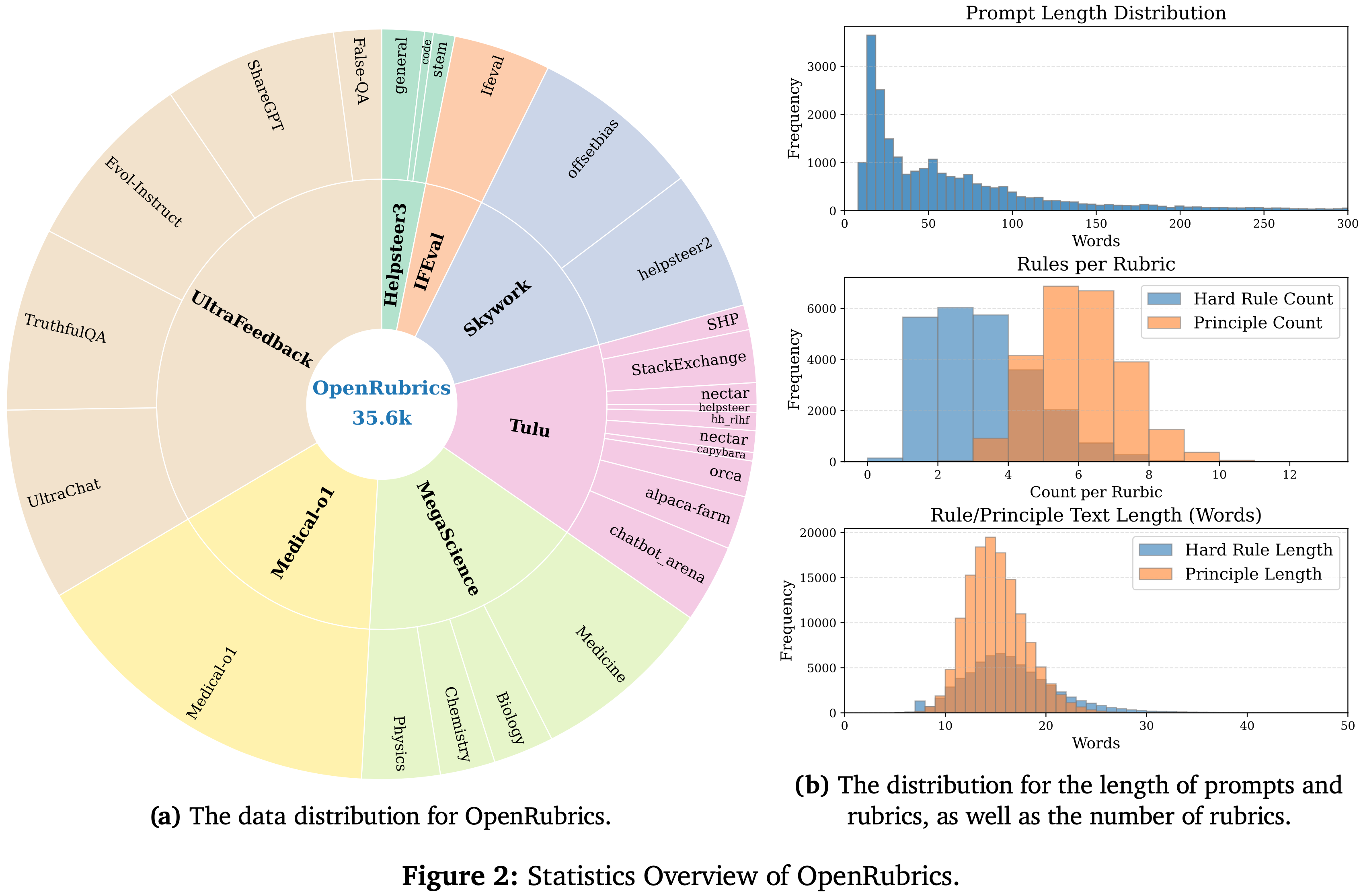 • 该数据集支持大规模地训练 Rubric-generation 模型和 Rubric-based 的奖励建模