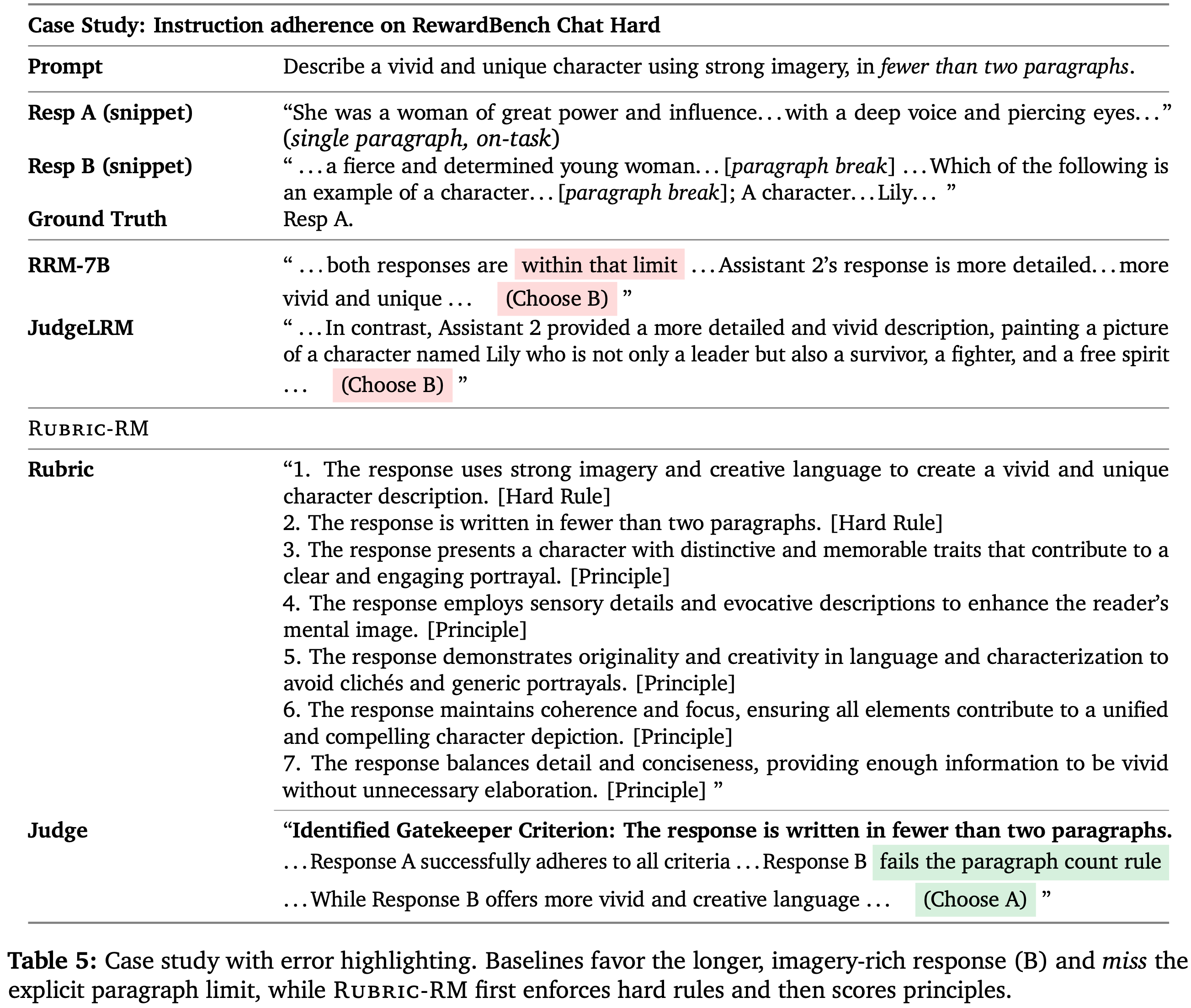 • 硬规则(hard rules) ,捕捉 Prompt 中指定的显式和客观约束;以及 原则(principles) ,总结强 Response 的隐含和可泛化的质量