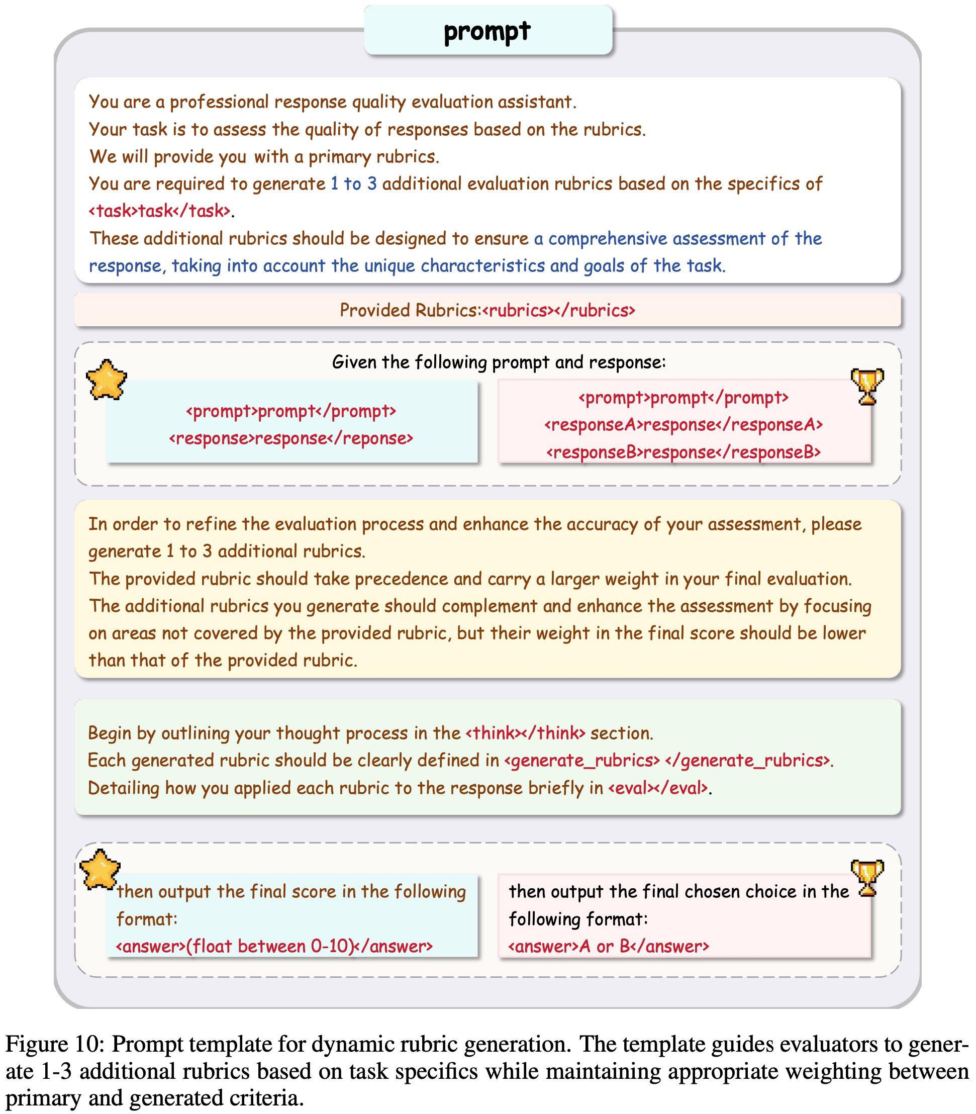 - 其中针对 Pointwise(五角星 ⭐️)和 Pairwise(奖杯 🏆)在 Prompt+Response 部分和输出部分不太一致(图 10 中已经标注清楚)