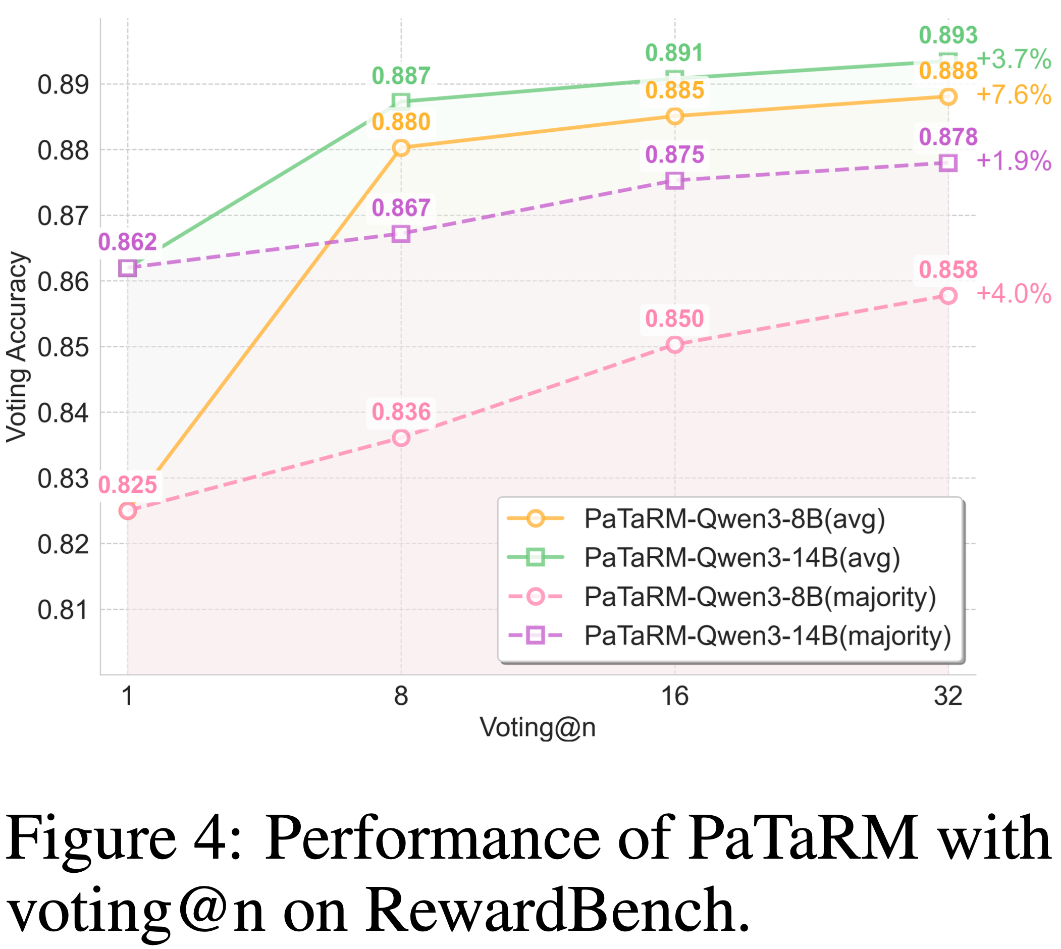 - PaTaRM 在 Qwen3-8B 和 Qwen3-14B 模型上,在 RewardBench 和 RMBench 上的平均相对改进达到 4.7%
