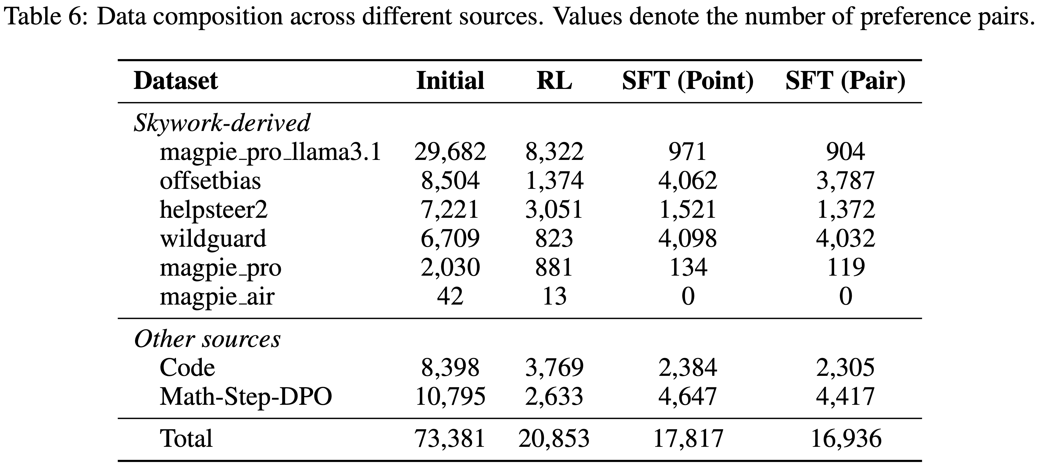 - 对于 Pairwise 设置,论文根据真实标签进行对齐得到 38k 个偏好对,然后将其与 Pointwise 子集取交集以确保可比性,得到 16.9k 个偏好对