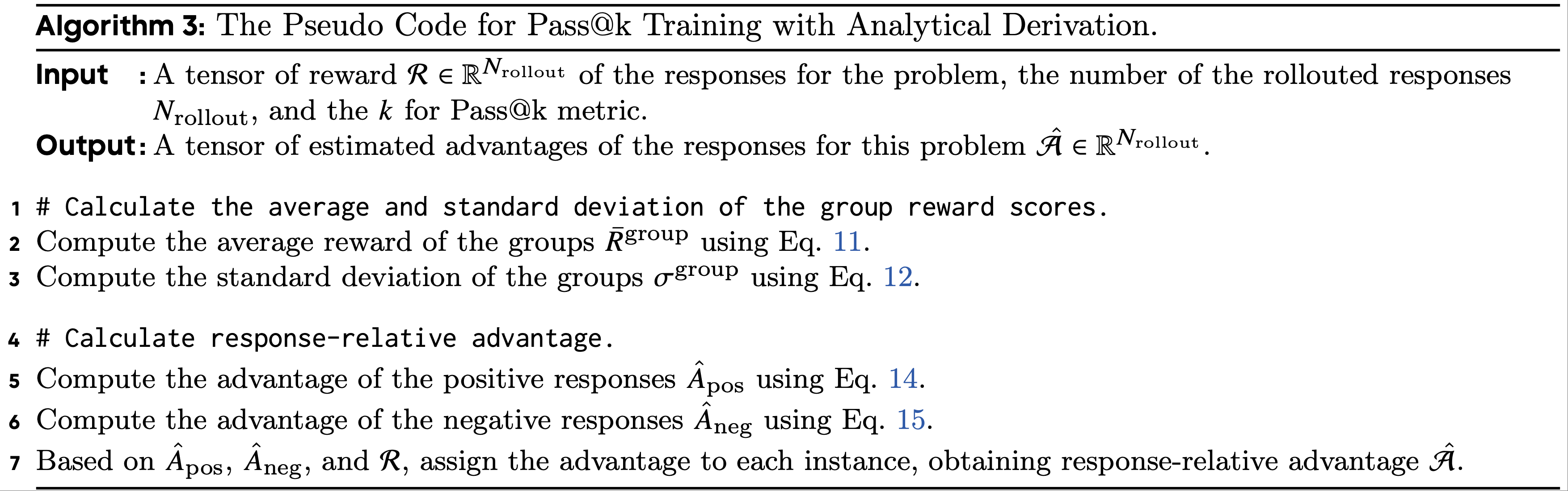 算法3:解析推导的 Pass@k Training 伪代码