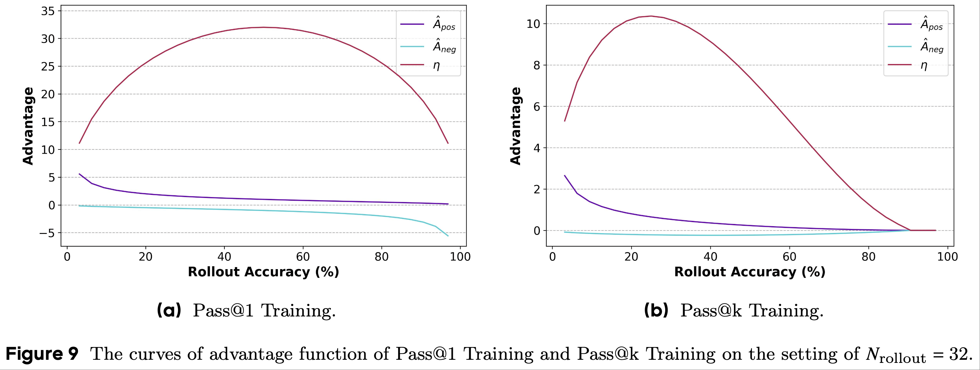 • 检查优势值曲线,论文初步确定了促成 Pass@k Training 成功的两个关键因素 ,即: