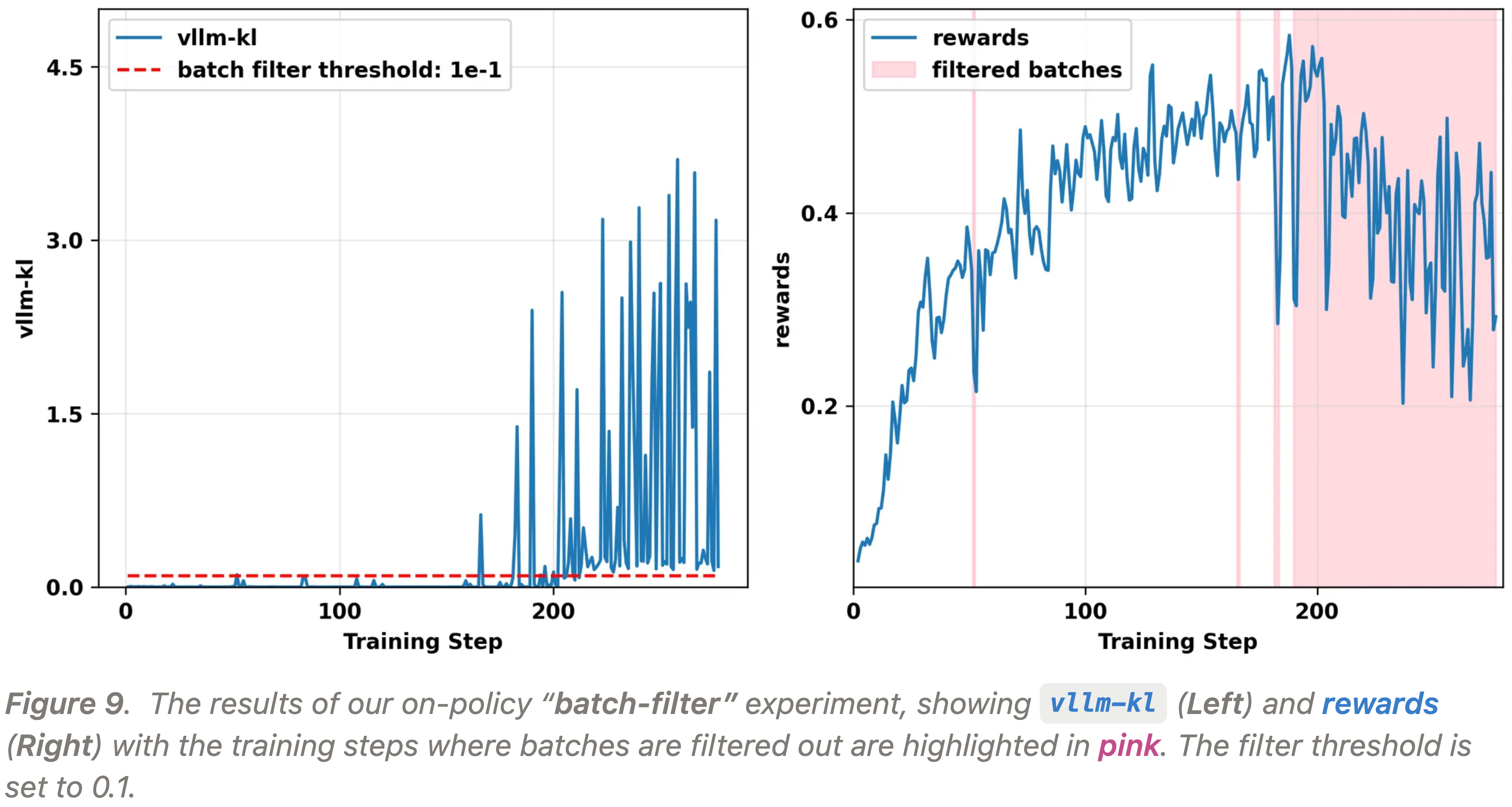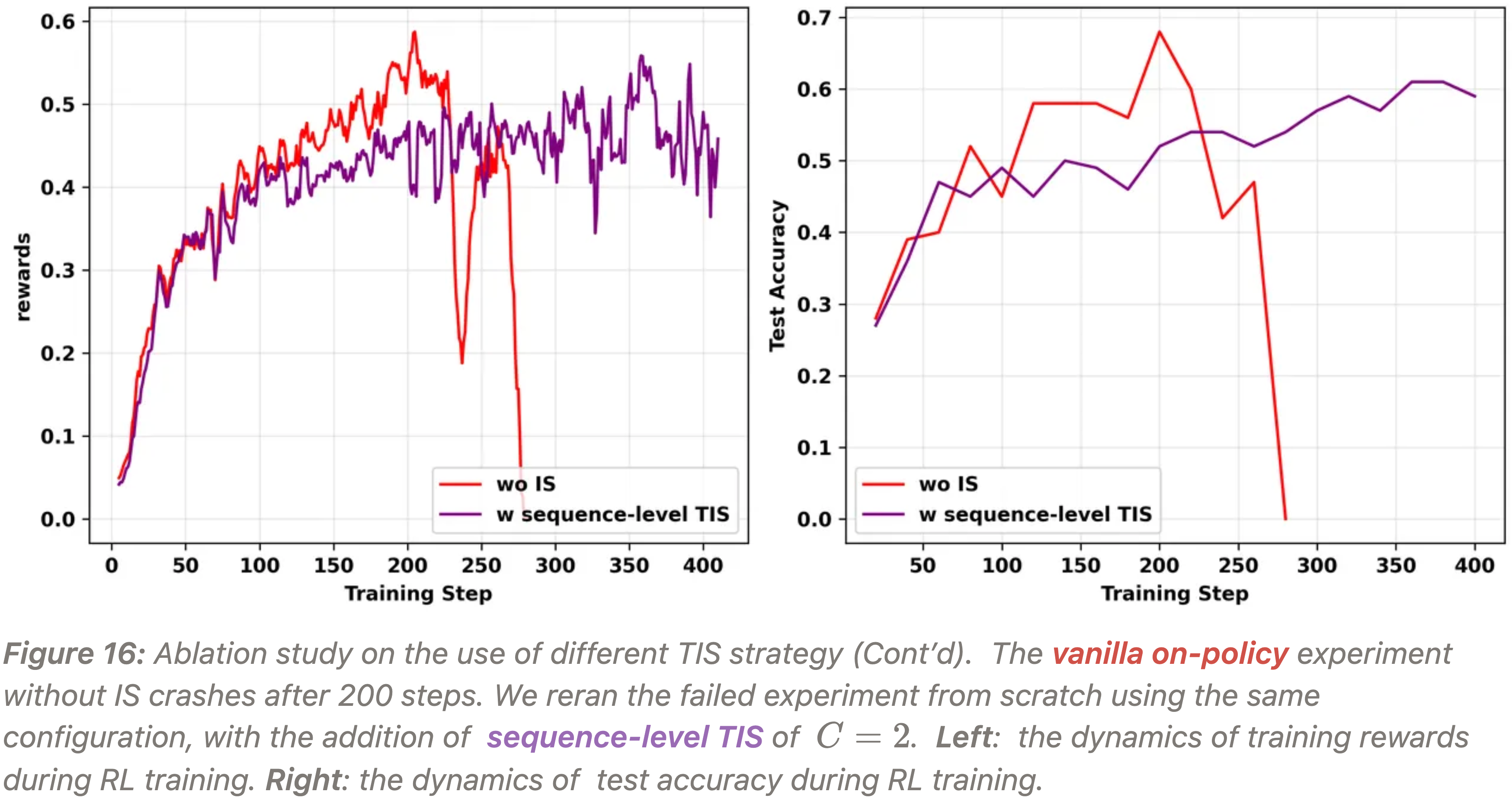 • 因为即使是更简单的 on-policy 实验也失败了,作者怀疑问题不在于 RL 算法本身,而在于训练栈中更基础的部分
