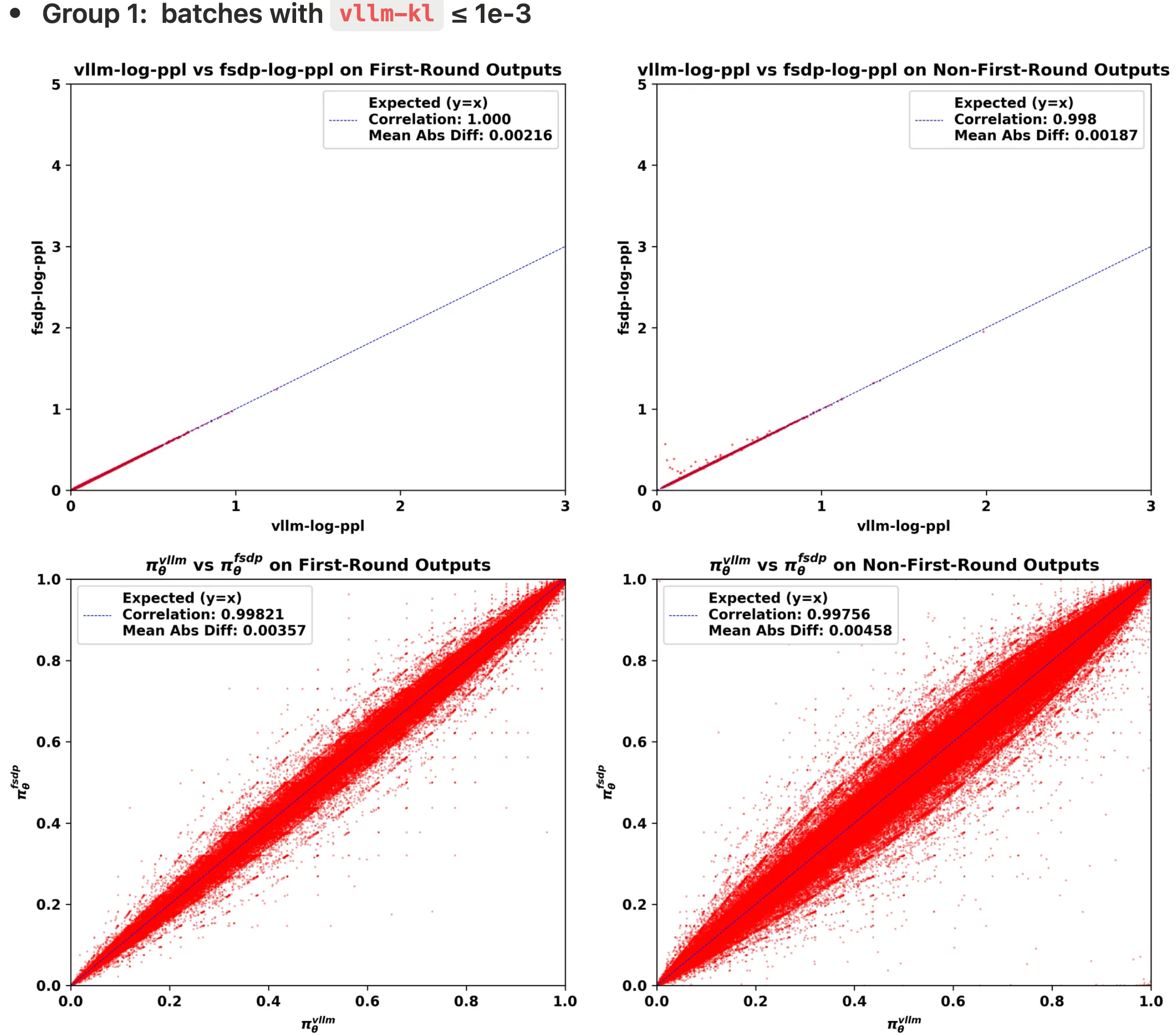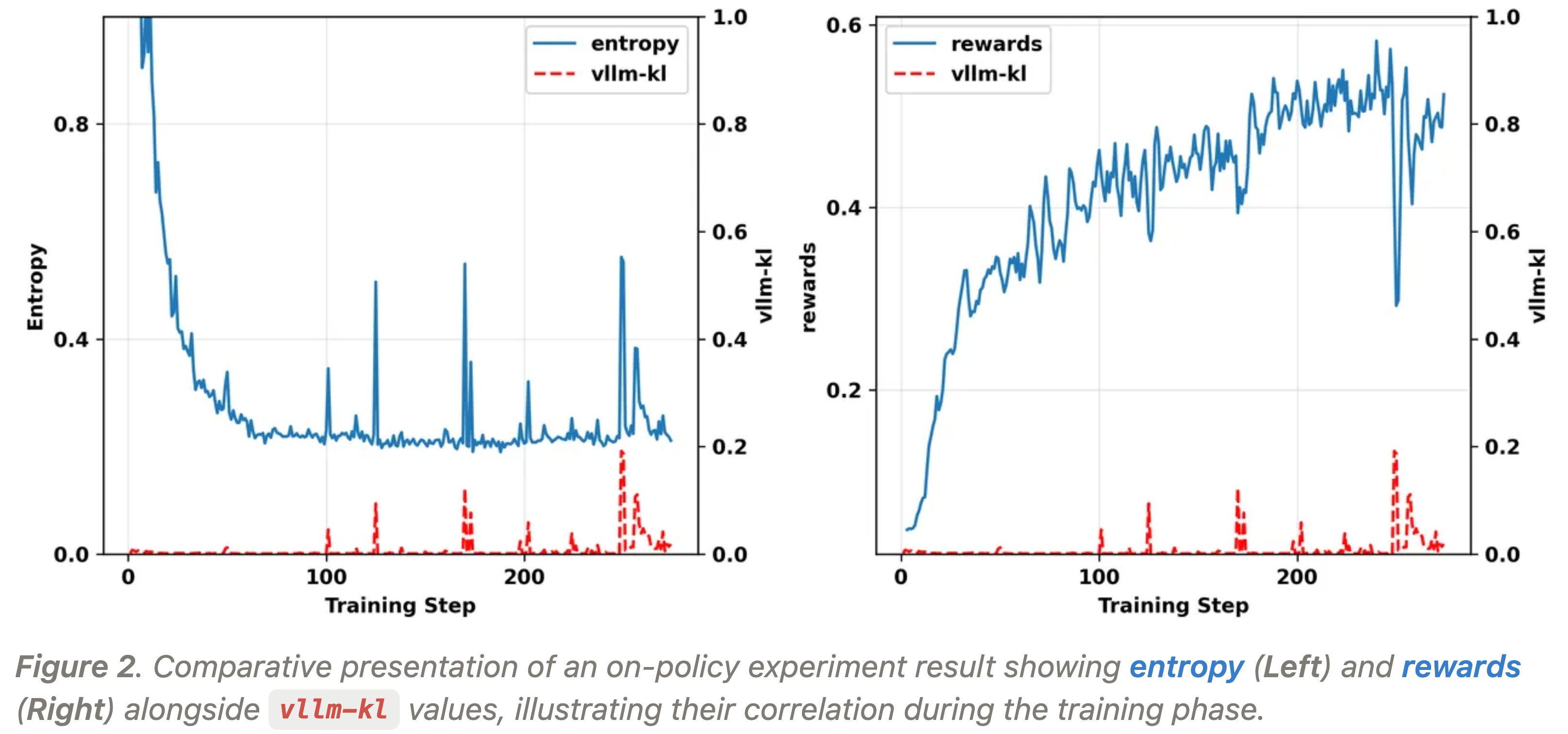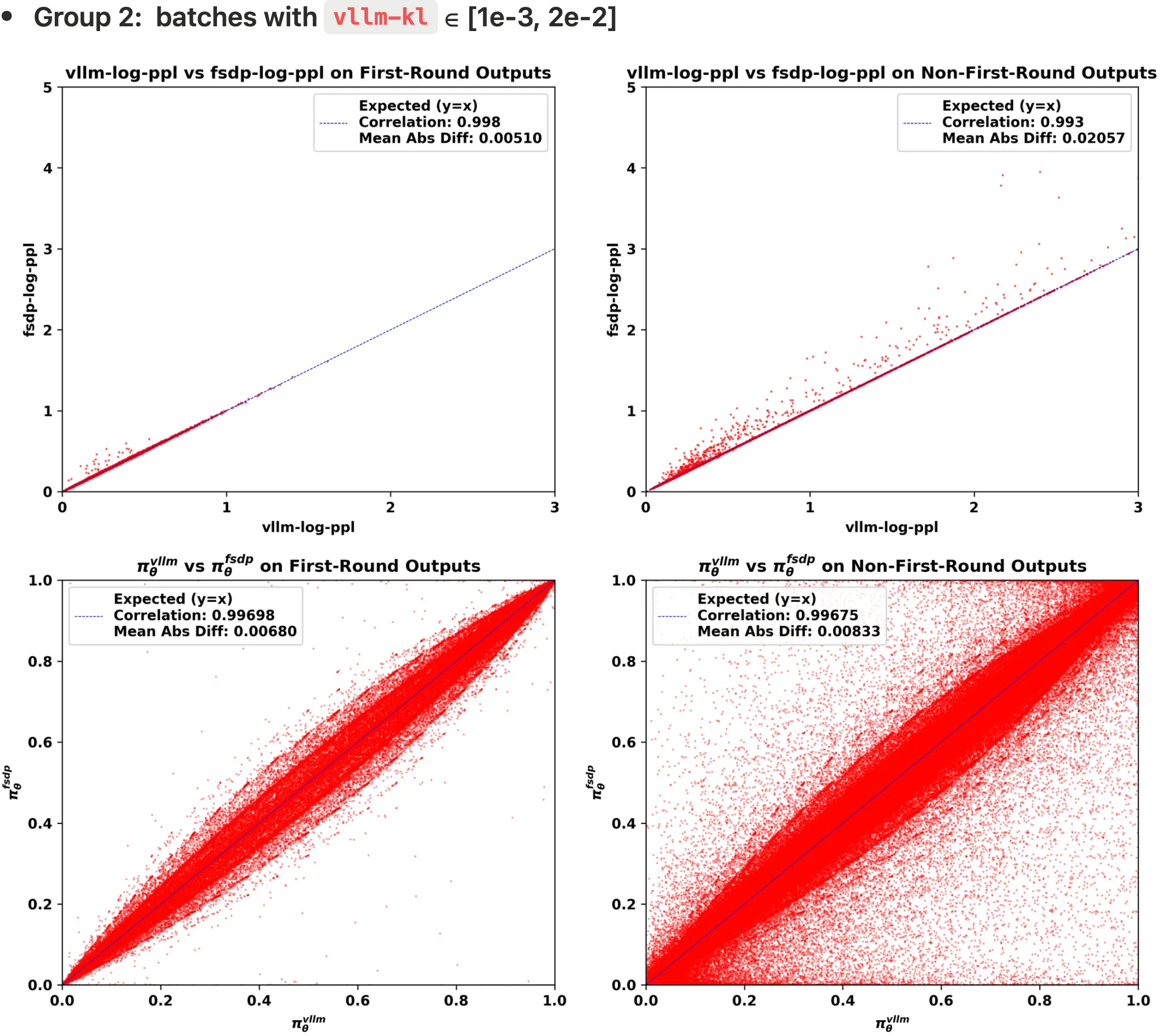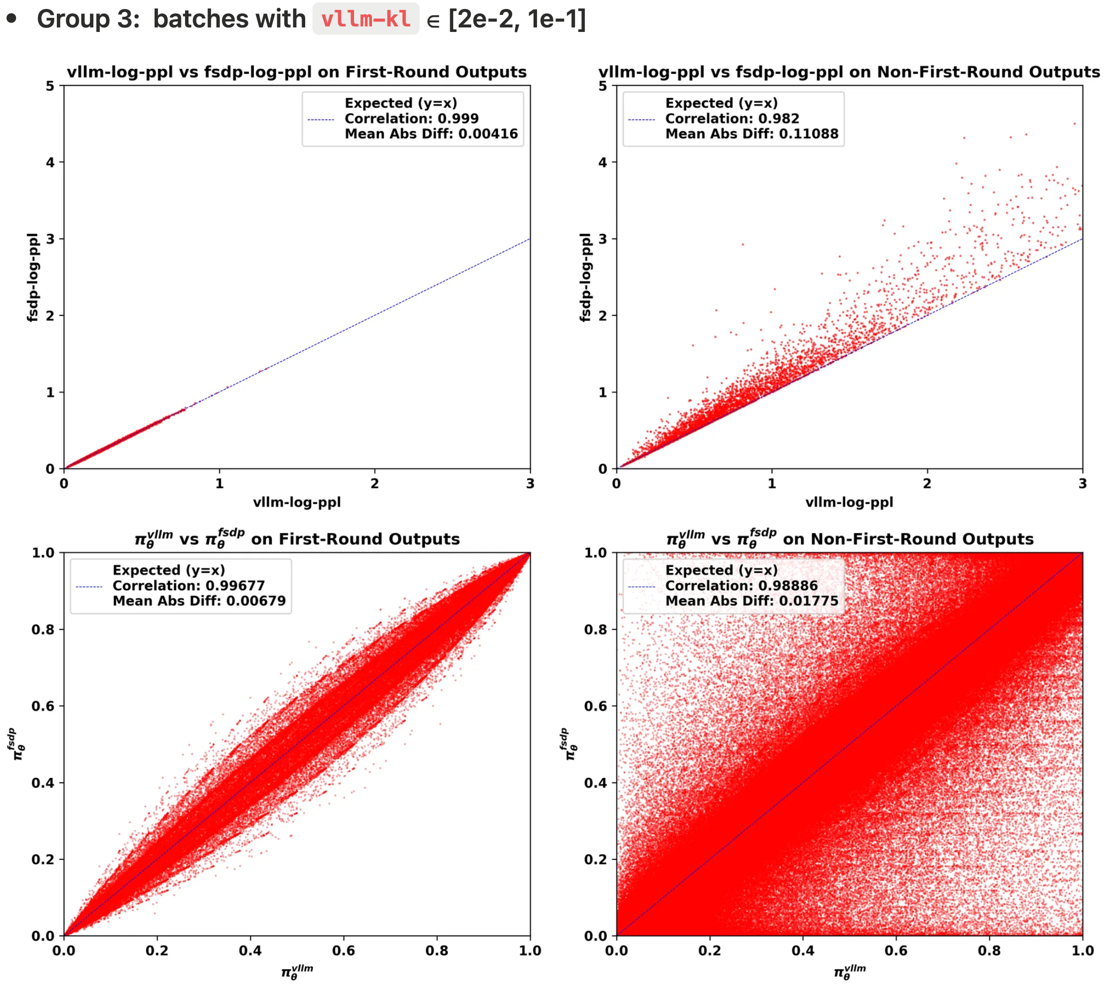 • 在作者的技术栈中,这种不匹配体现在作者的 vLLM 推理采样器和 FSDP 训练器之间