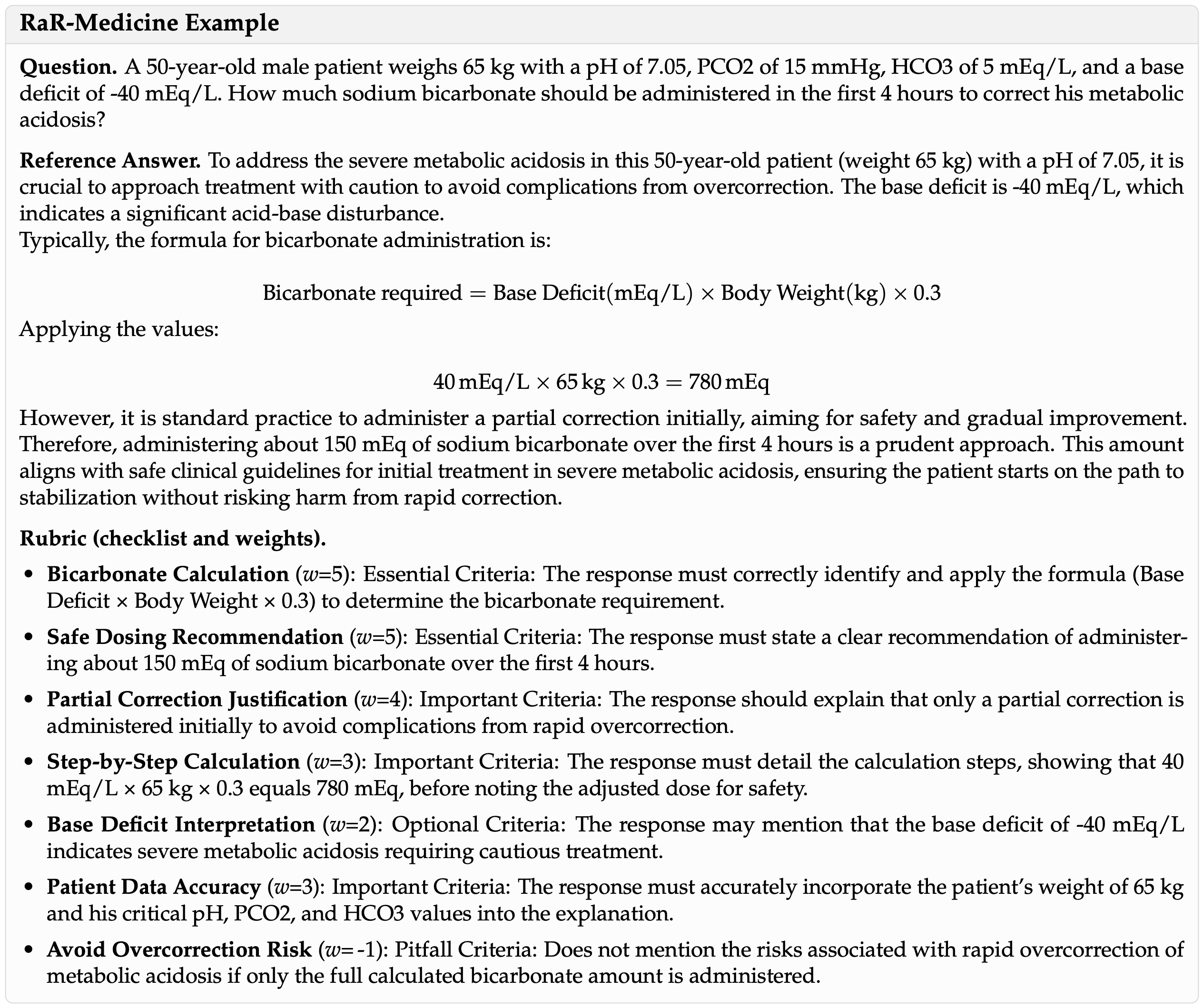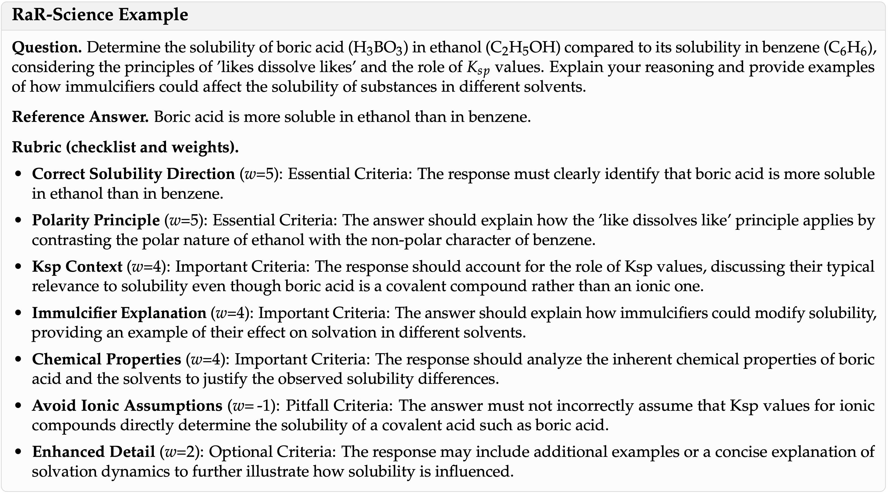 • Rubric 应通过捕捉正确性所必需的基本事实、推理步骤和结论来反映领域专业知识