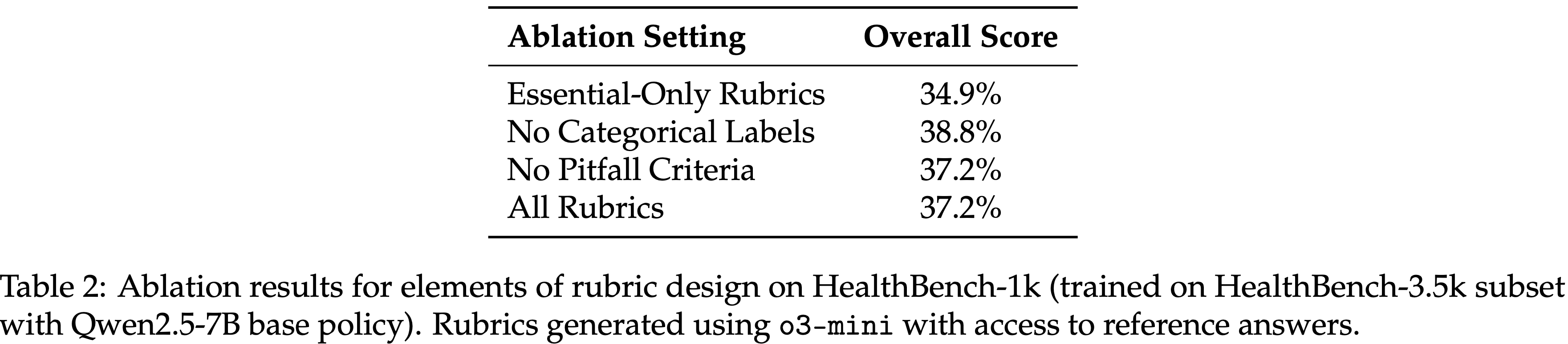 • 论文进一步排除了用于消融研究的 HealthBench-1k 中的 Prompt
