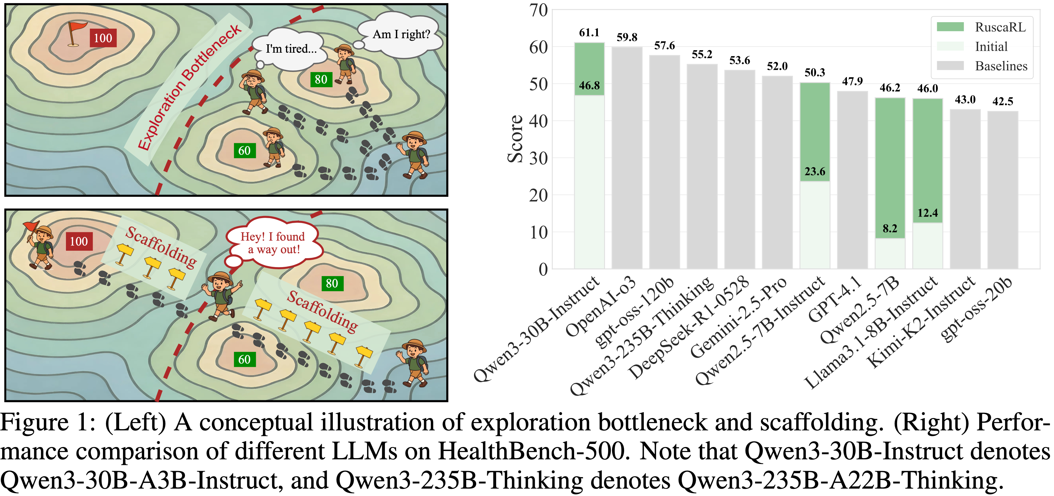• RuscaRL 是一个新颖的教学 Scaffolding 框架,旨在打破通用 LLM 推理任务的探索瓶颈