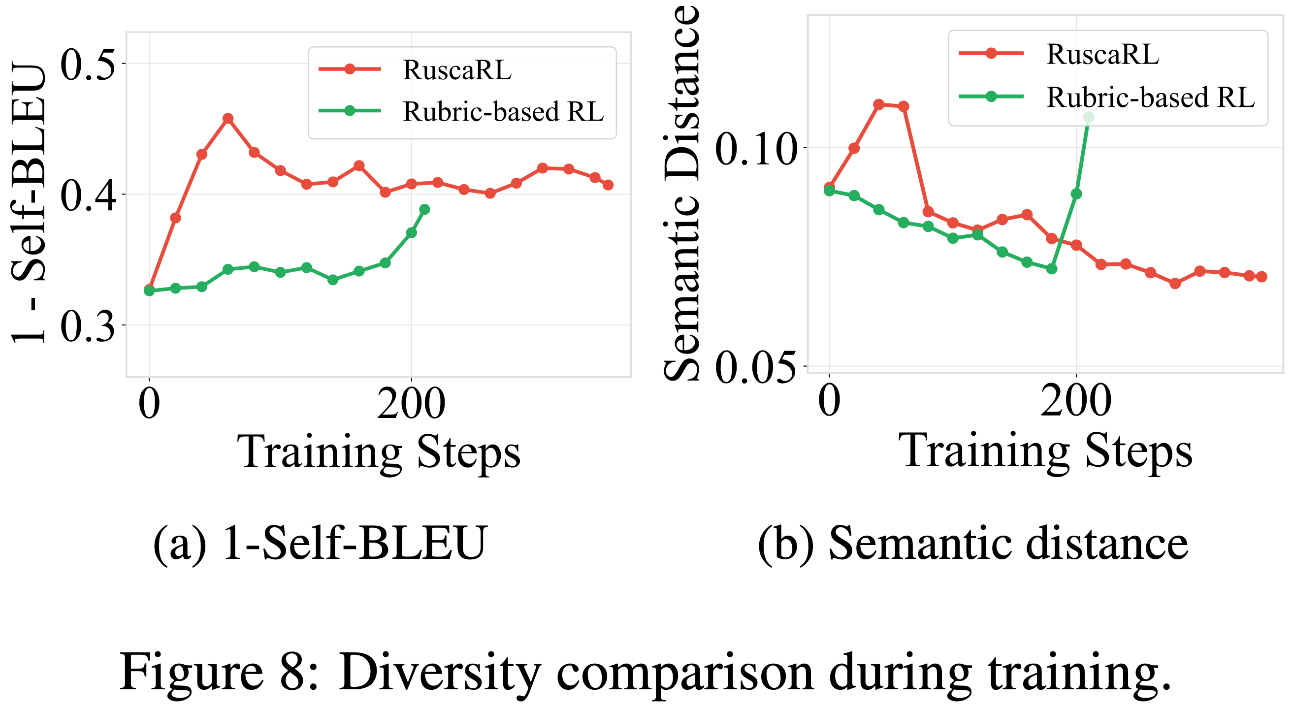 • 使用 RuscaRL 微调的模型能够生成初始模型几乎无法生成的高度新颖的 Response