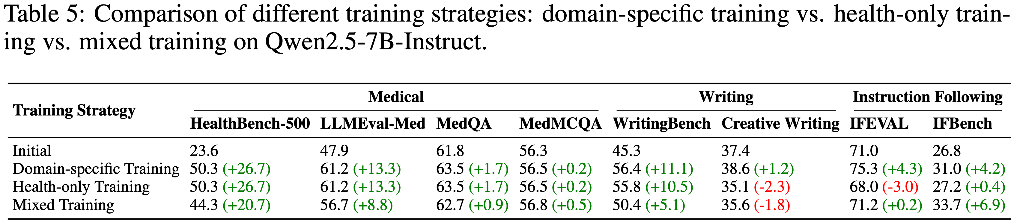 • Furthermore,论文在 Qwen3-30B-A3B-Instruct 上微调的变体在 HealthBench-500 上达到了 61.1 分,性能优于包括 OpenAI-o3 在内的领先 LLMs