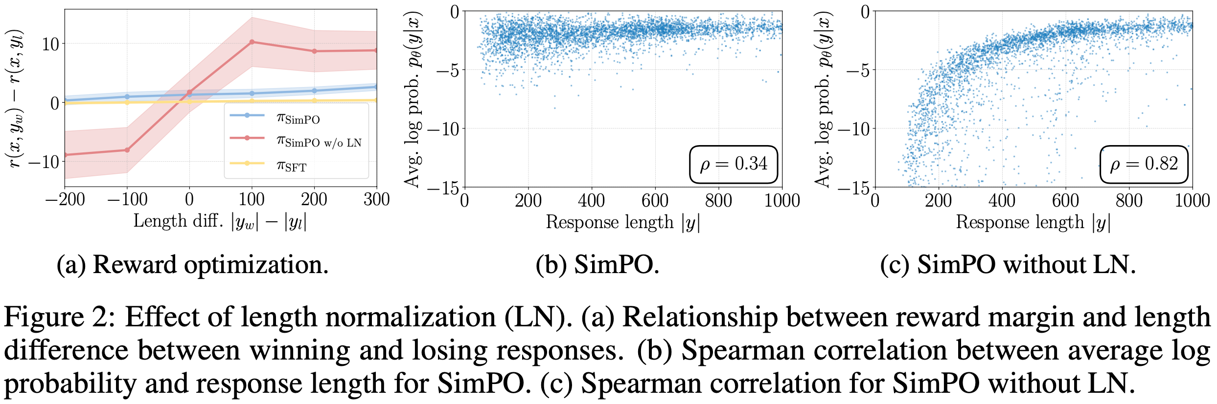 - 因此,当 \( y_w \) 比 \( y_l \) 长时,优化对数概率之和作为奖励会迫使模型人为提高较长序列的概率 ,以确保 \( y_w \) 的奖励高于 \( y_l \)