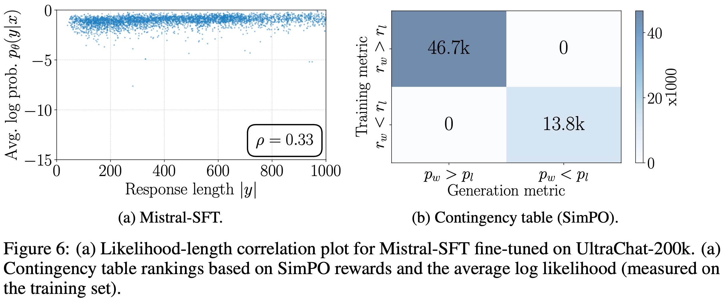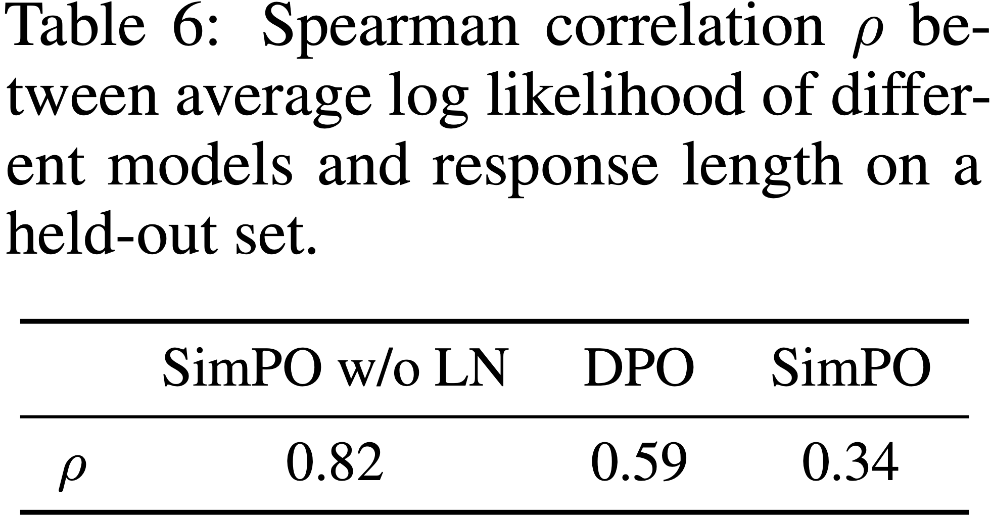 - 这一发现与近期研究 (2024) 一致,后者发现现有 DPO 训练模型在平均对数似然排序上表现出随机性,即使经过大量偏好优化