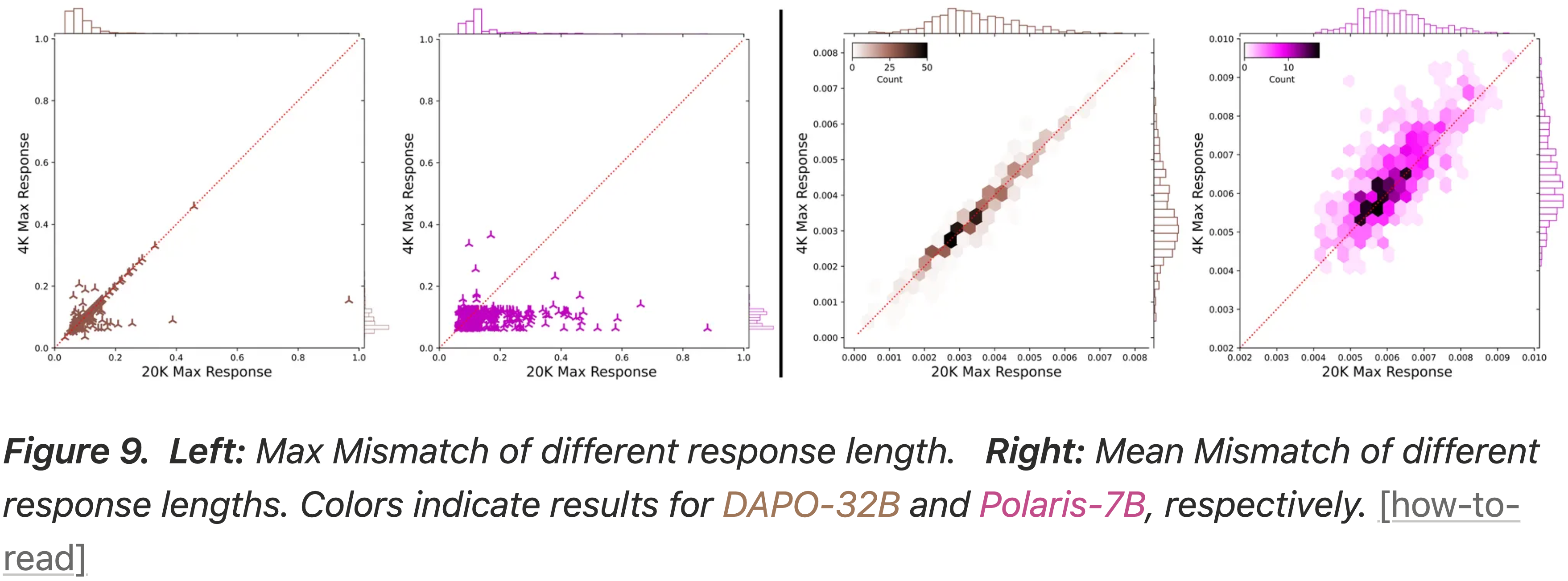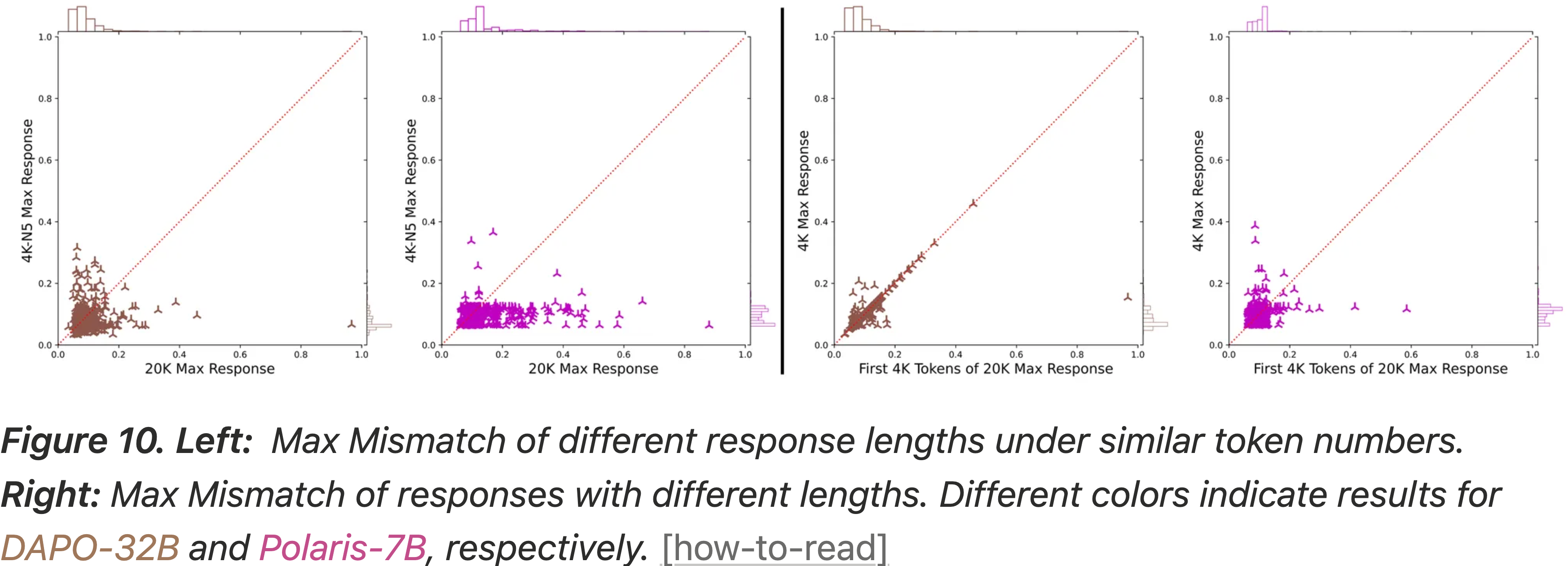 • 左图:在相似 Token 数量下,不同响应长度的 Max Mismatch