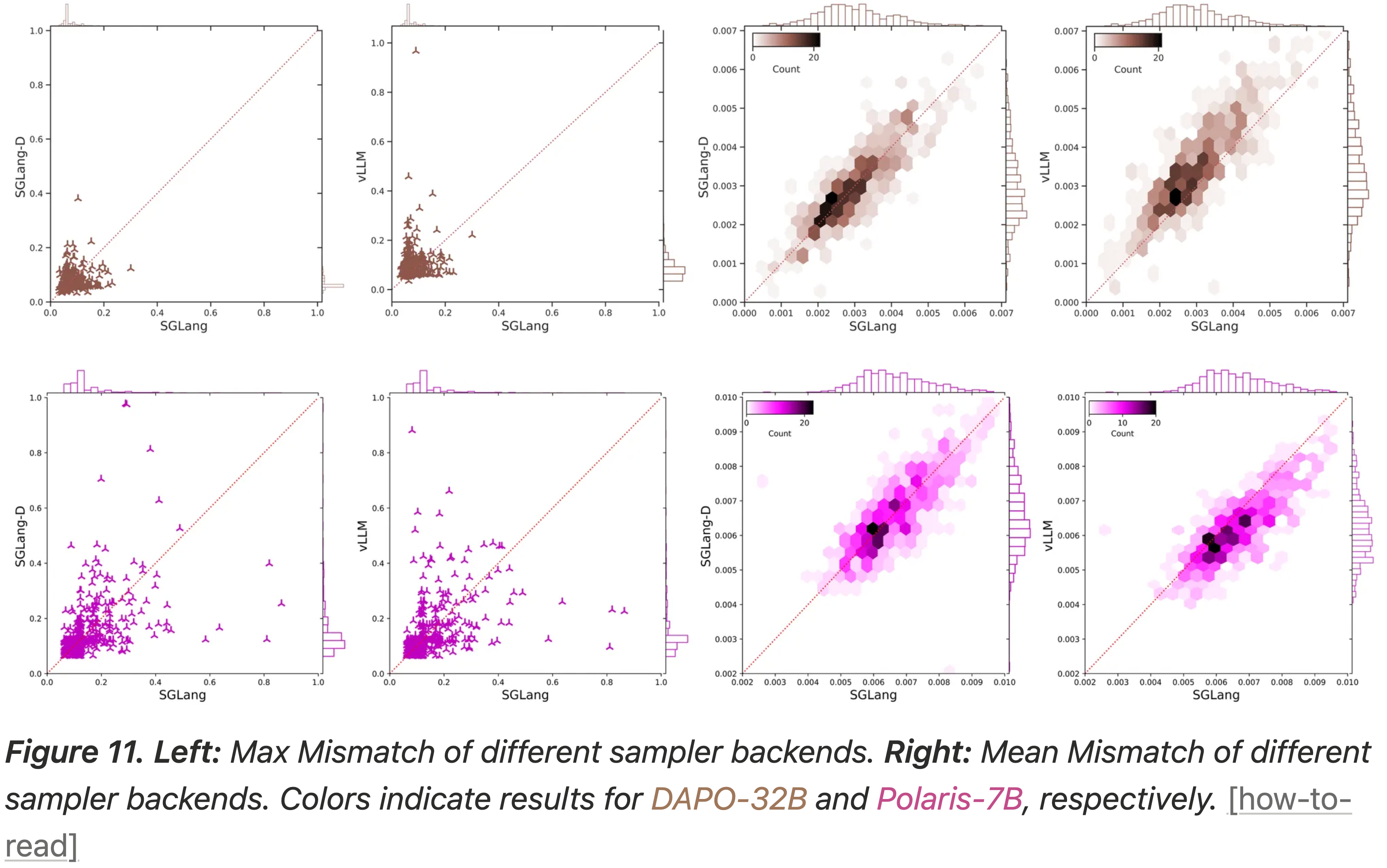 • 左图:不同 Sampler 后端的 Max Mismatch
