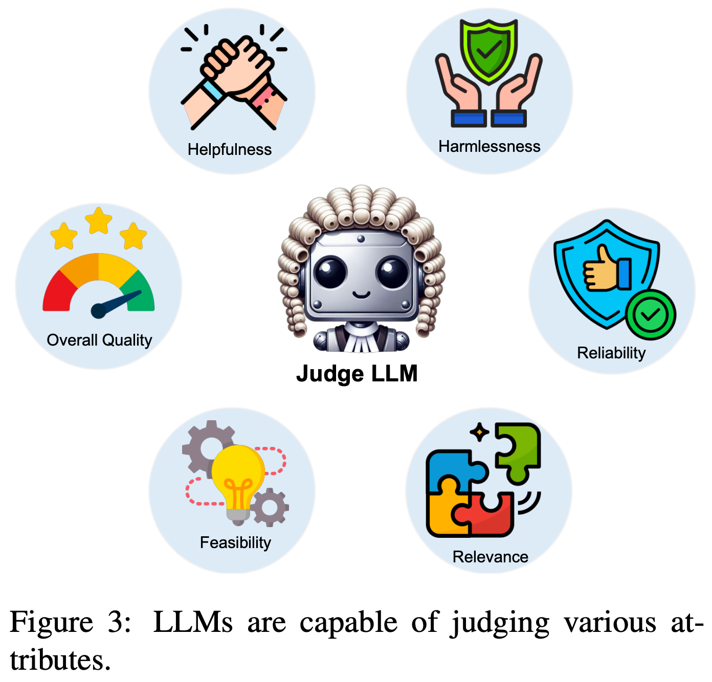• 属性(Attribute)评判什么? 论文深入研究 Judge LLM 评估的具体属性,包括帮助性、无害性、可靠性、相关性、可行性和整体质量