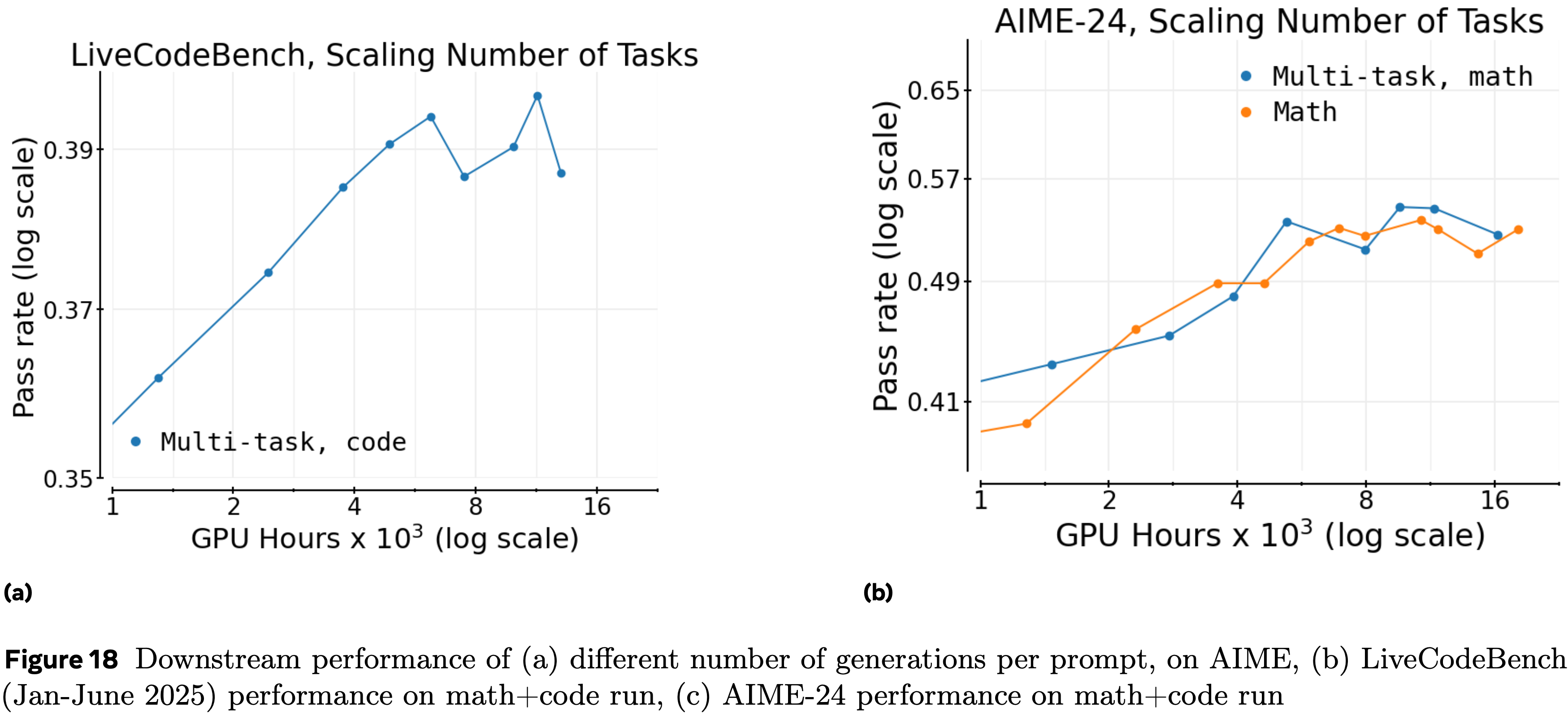 - 这些包括具有批次大小 \(\{512,768,2048\}\) 的 ScaleRL 运行、具有 32k 生成长度的长上下文训练运行、大模型(Scout)训练运行、多任务运行(数学 + 代码)以及不同每个提示生成数量(固定批次大小)的运行