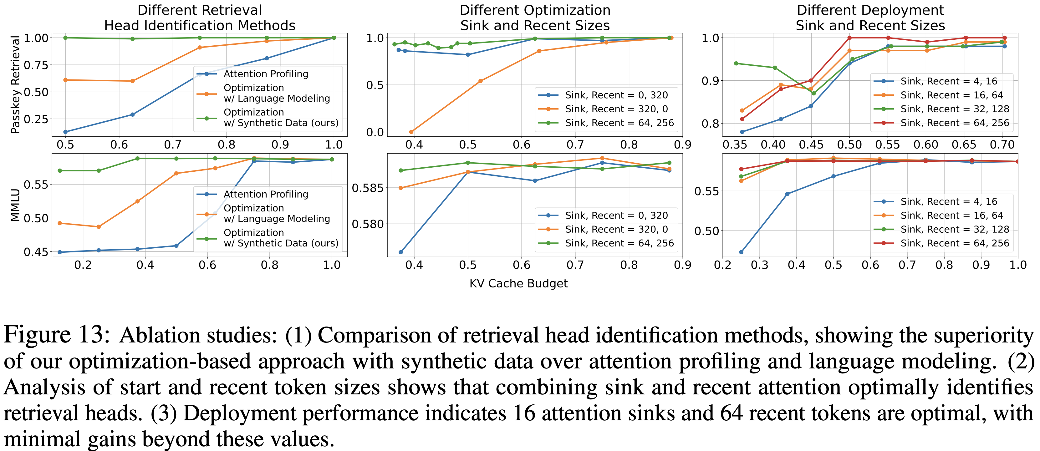 • 图 13 (2) 强调了在优化阶段结合 Sink 和 Recent 注意力的重要性